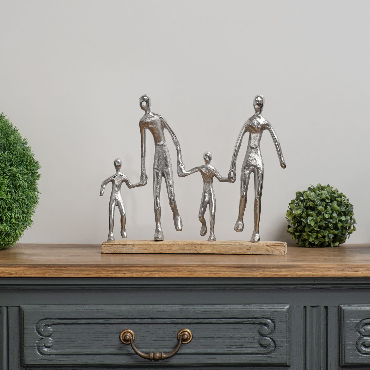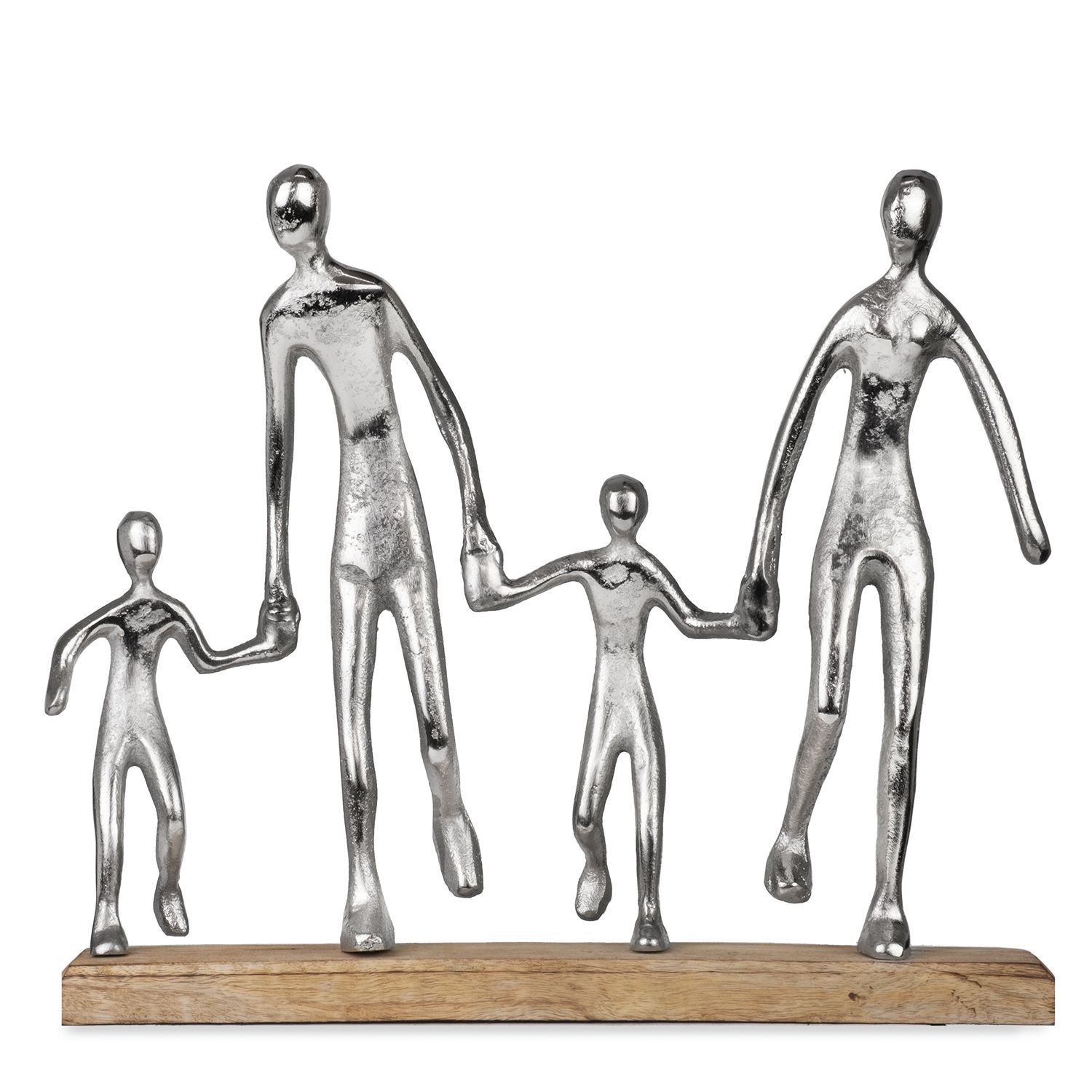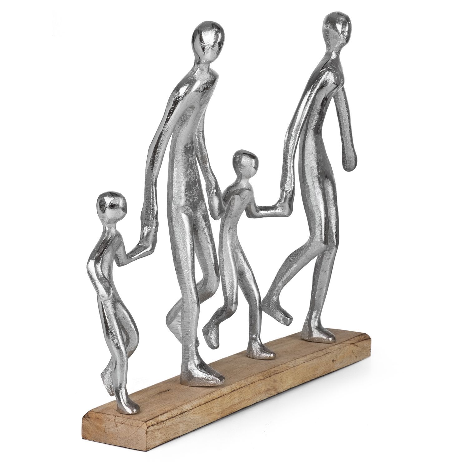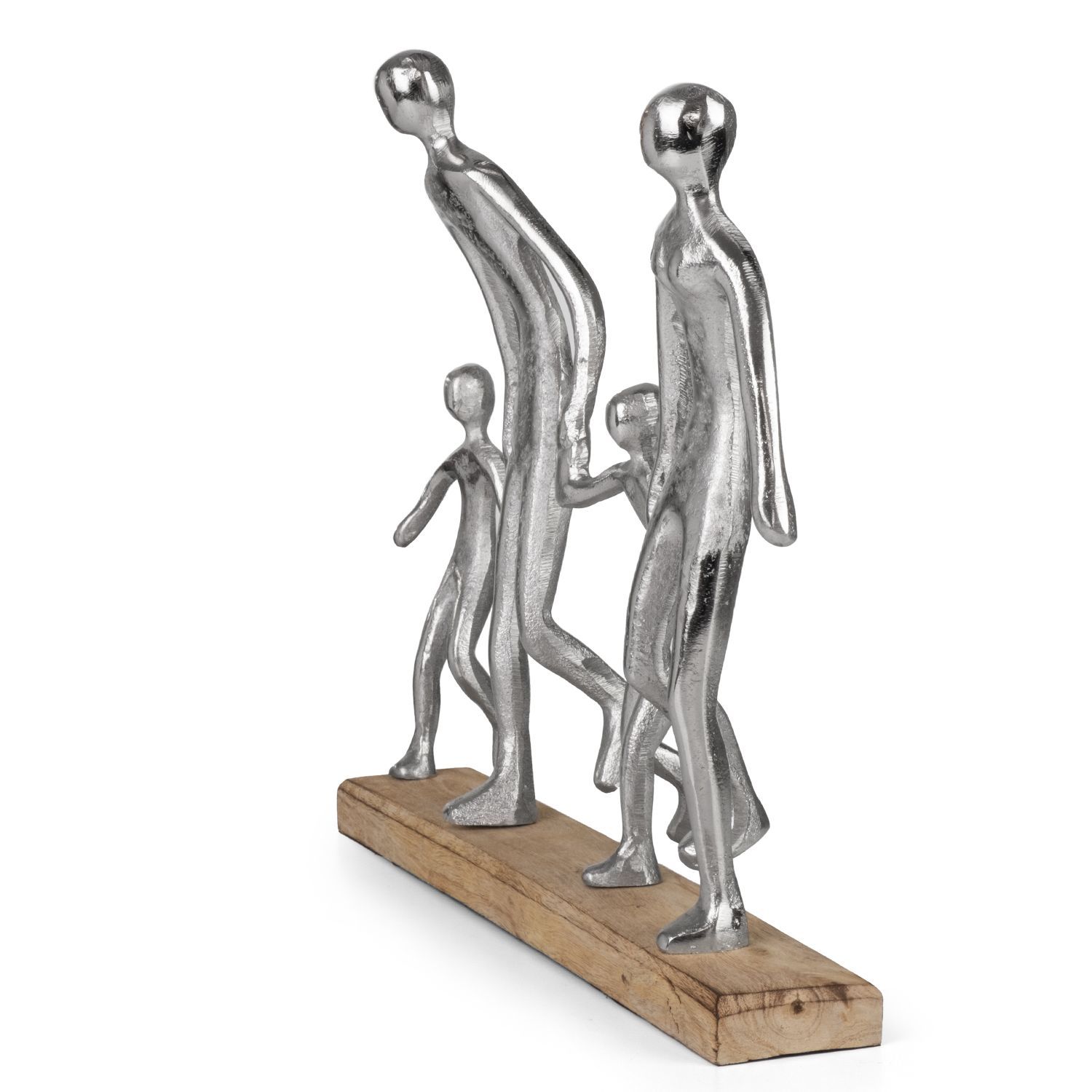 Moderne Dekofigur Familie 4 Personen auf Holzsockel 37 x 8,5 x 31 cm - stilvolle Skul