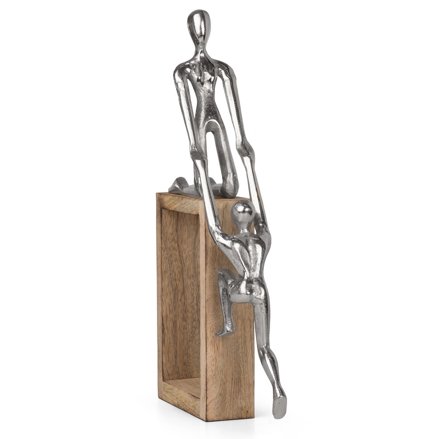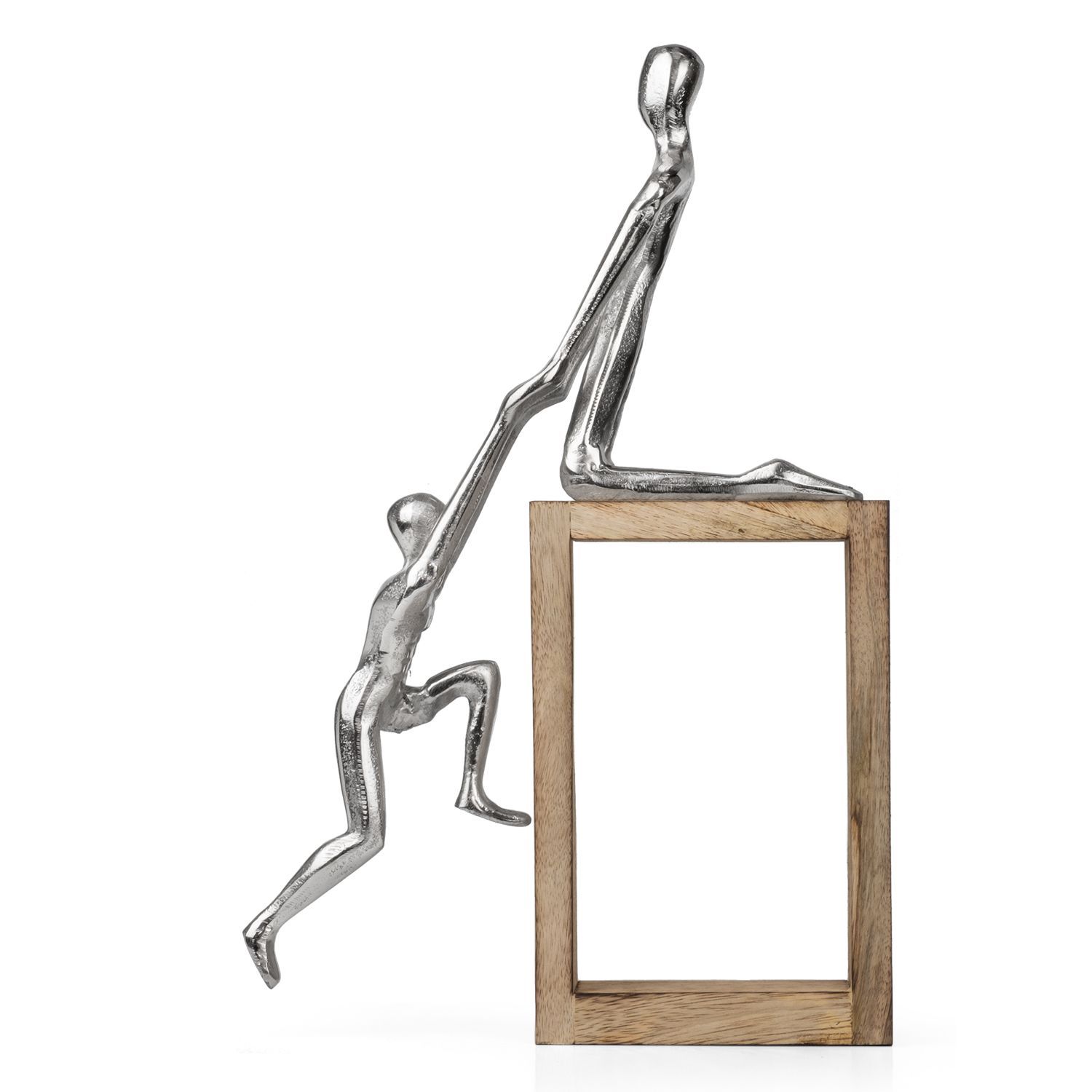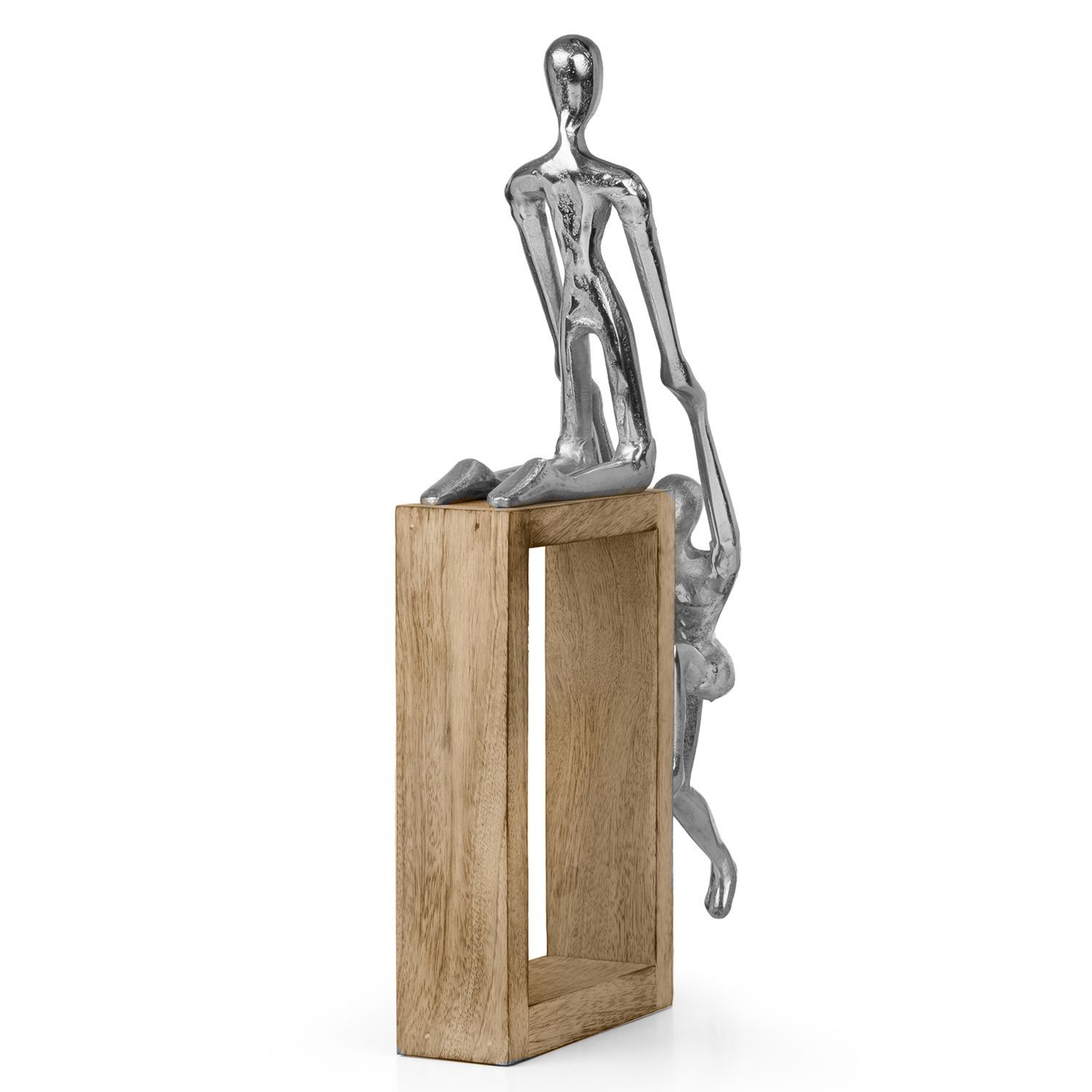 Moderne Dekofigur Hilfe leisten aus Aluminium auf Mangoholzsockel 27,8 x 7 x 42,5 cm