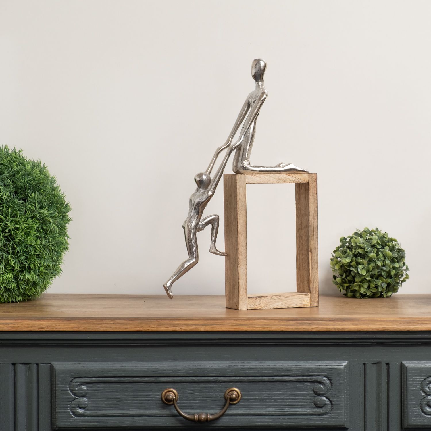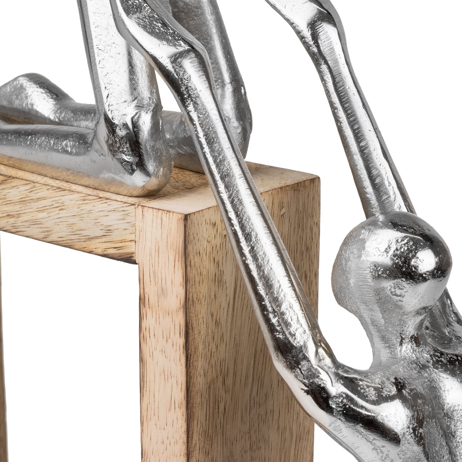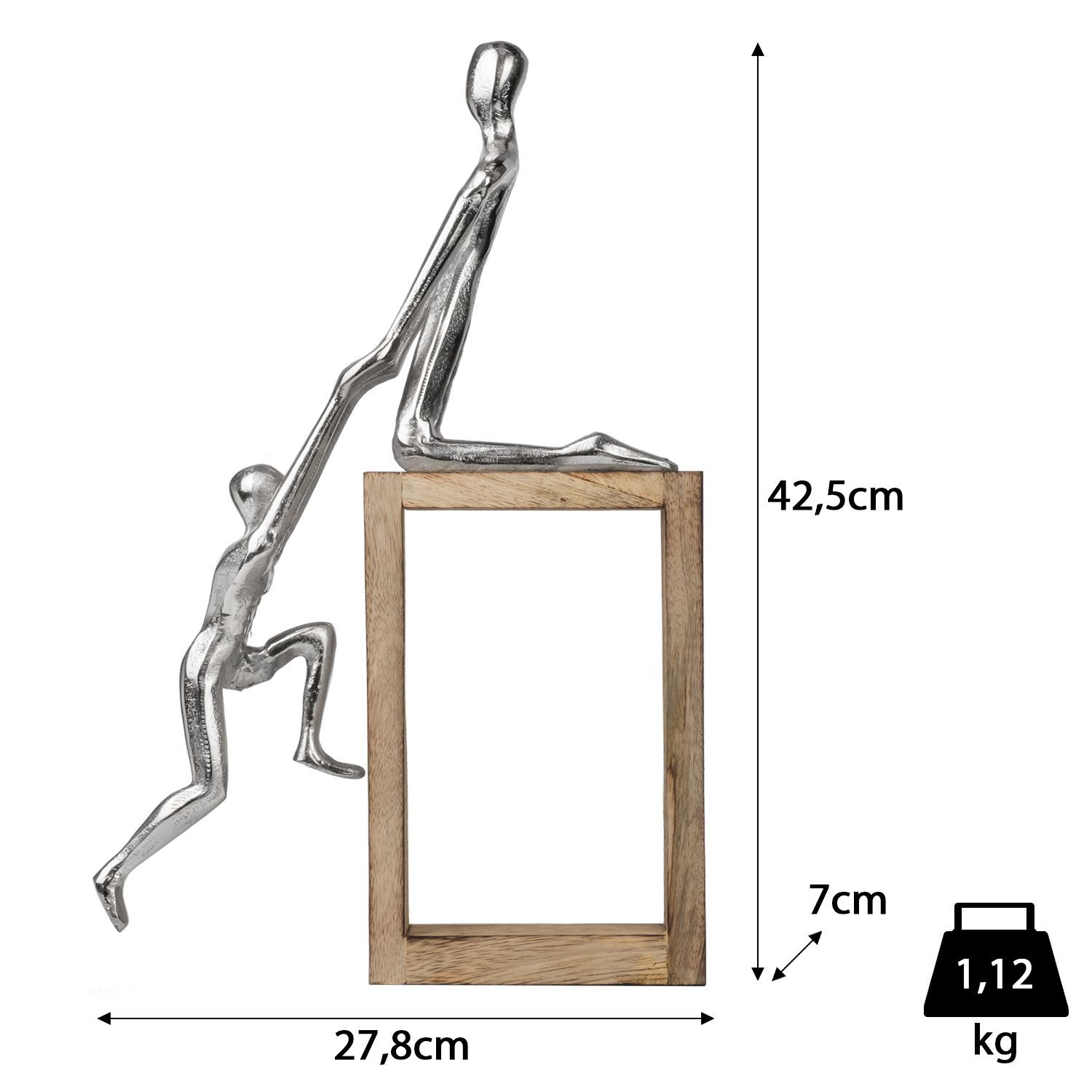 Moderne Dekofigur Hilfe leisten aus Aluminium auf Mangoholzsockel 27,8 x 7 x 42,5 cm