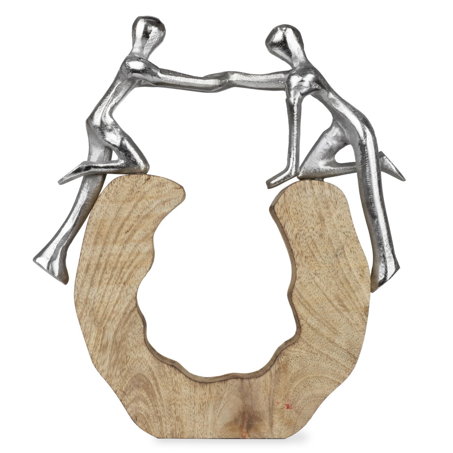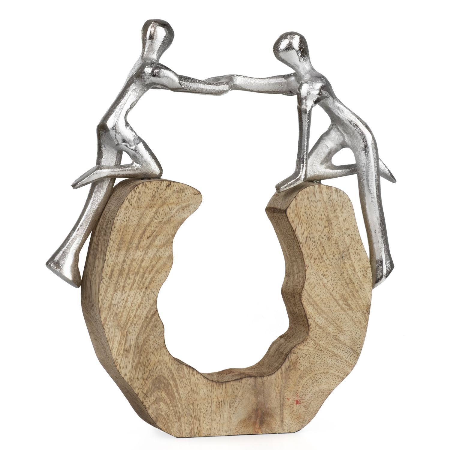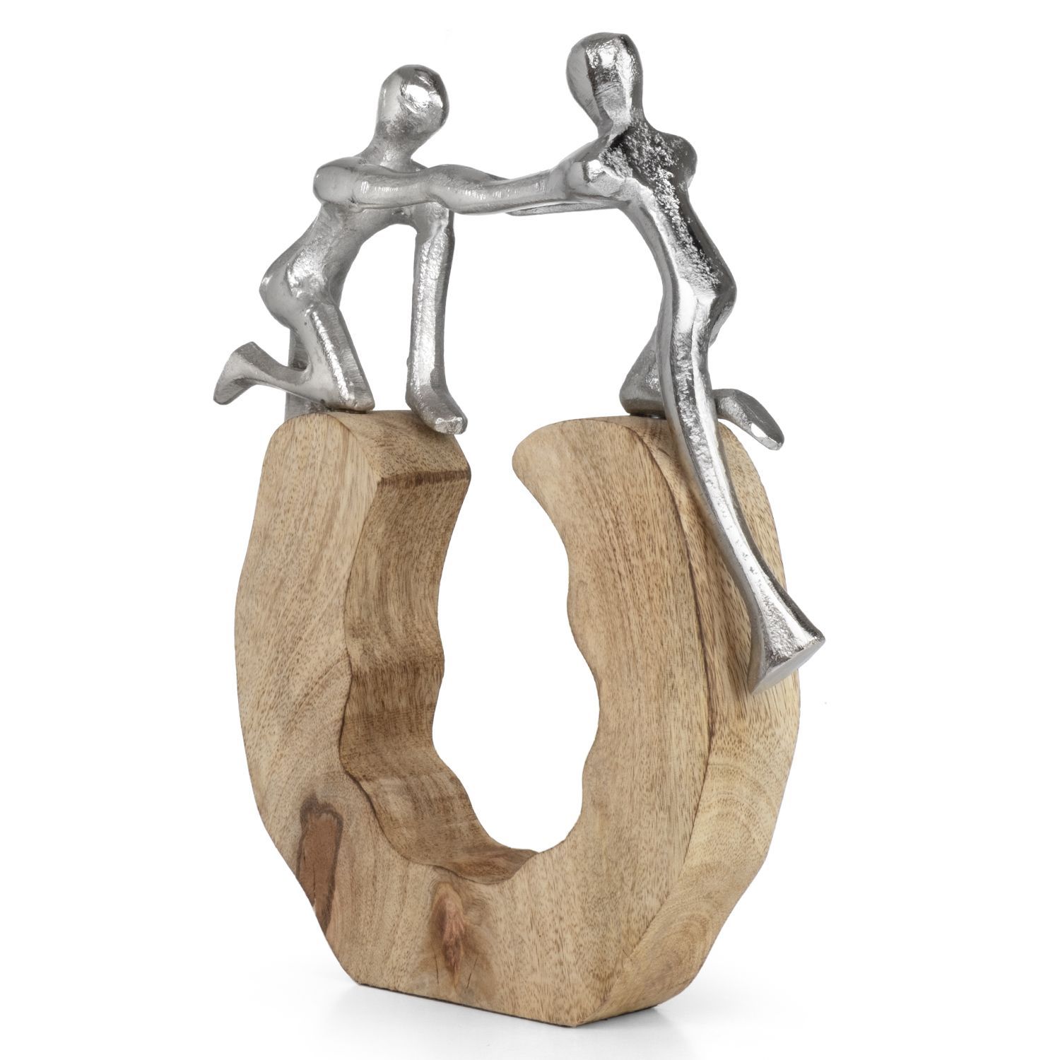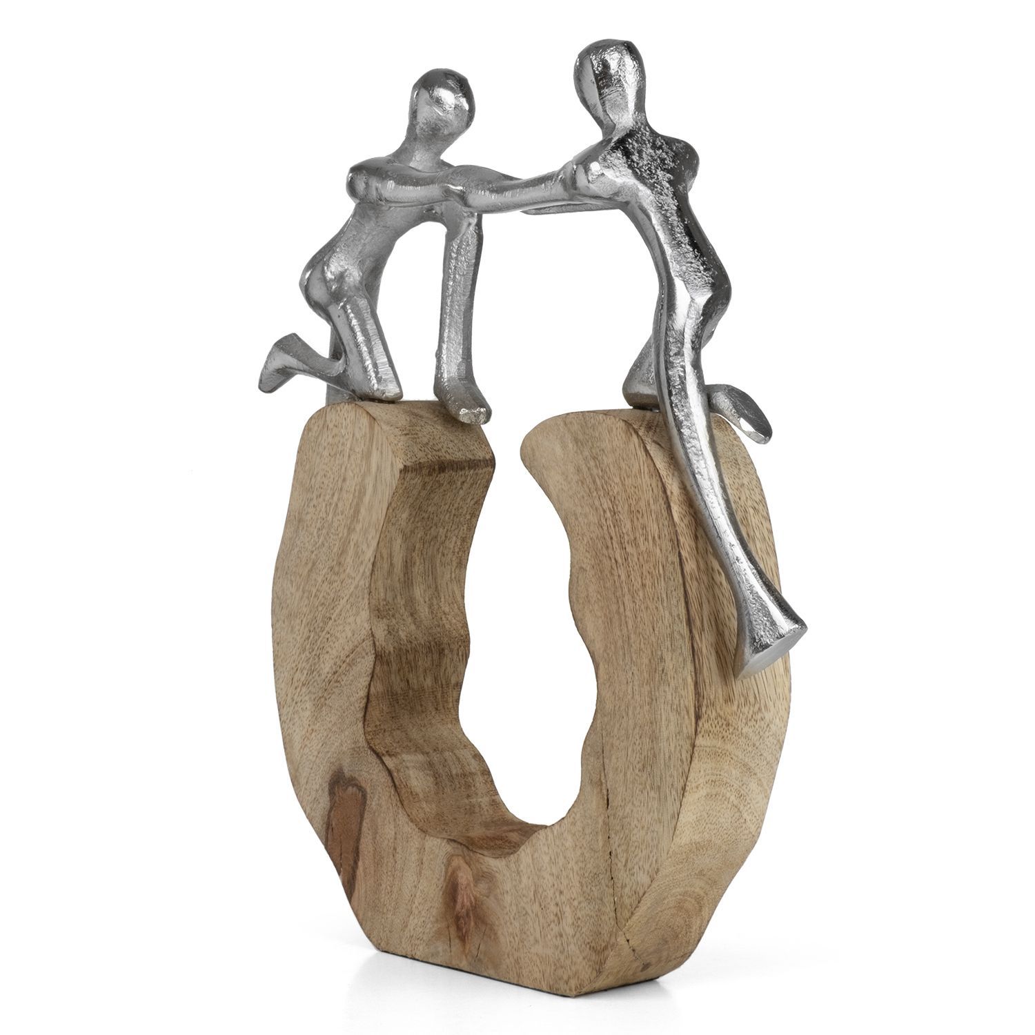 Moderne Dekofigur Hilfe und Zusammenhalt 22,5 x 3,5 x 25 cm abstrakt silber Holzsocke
