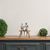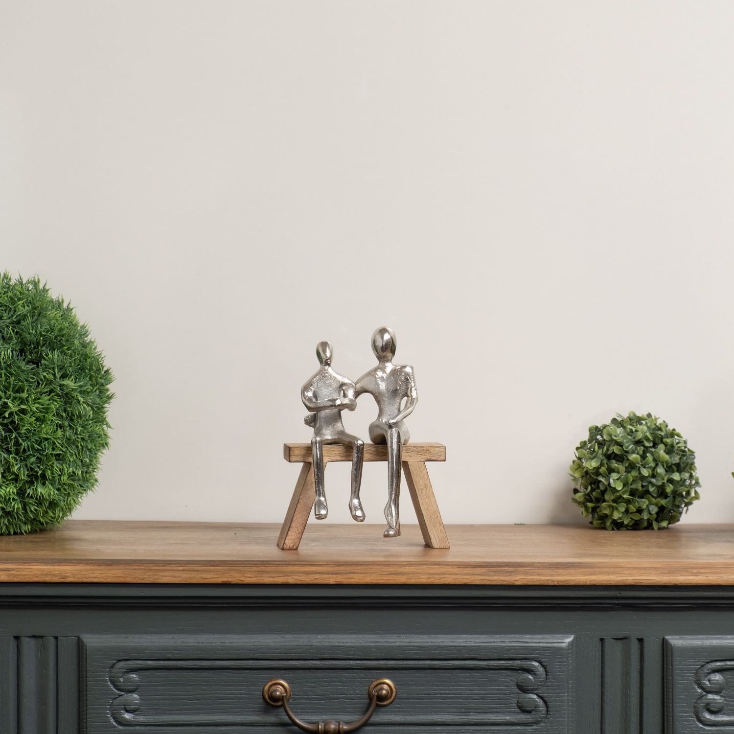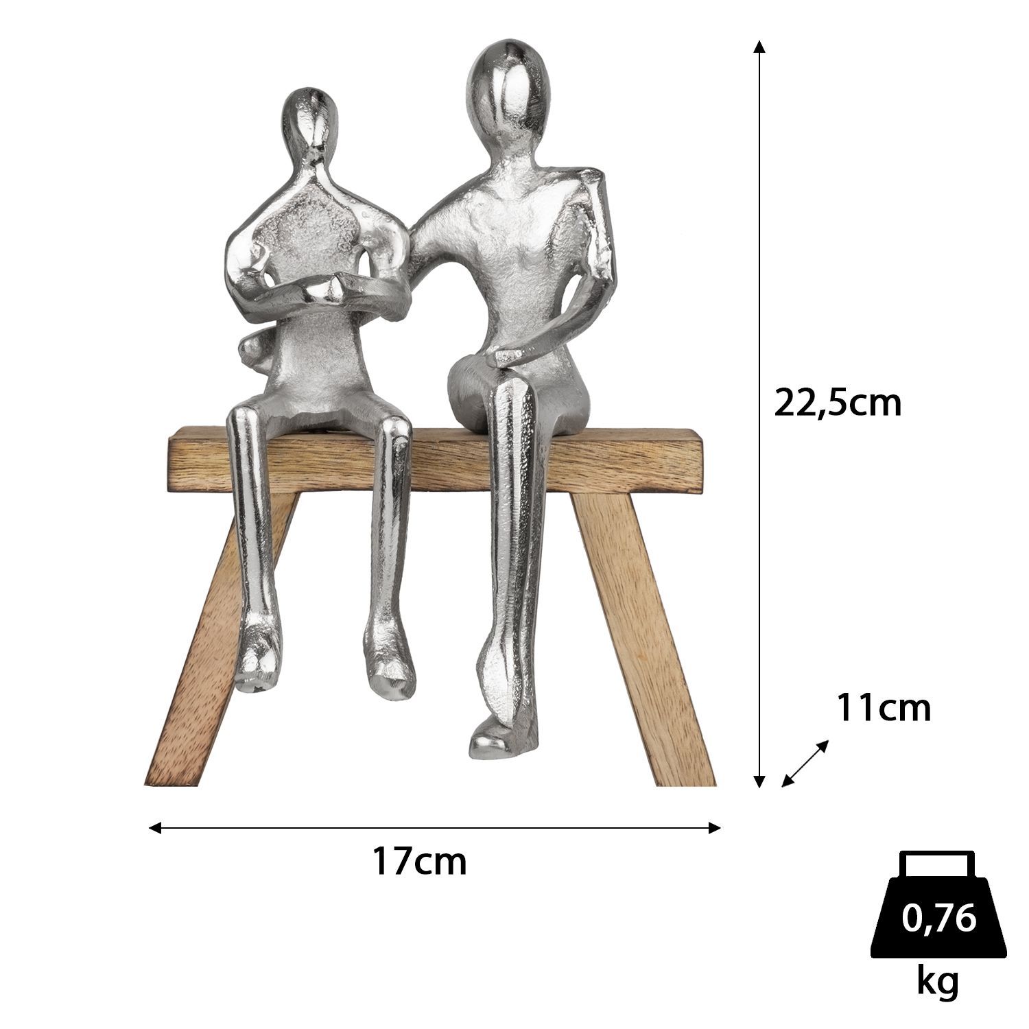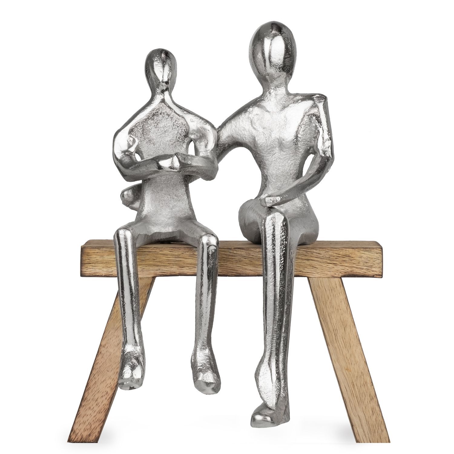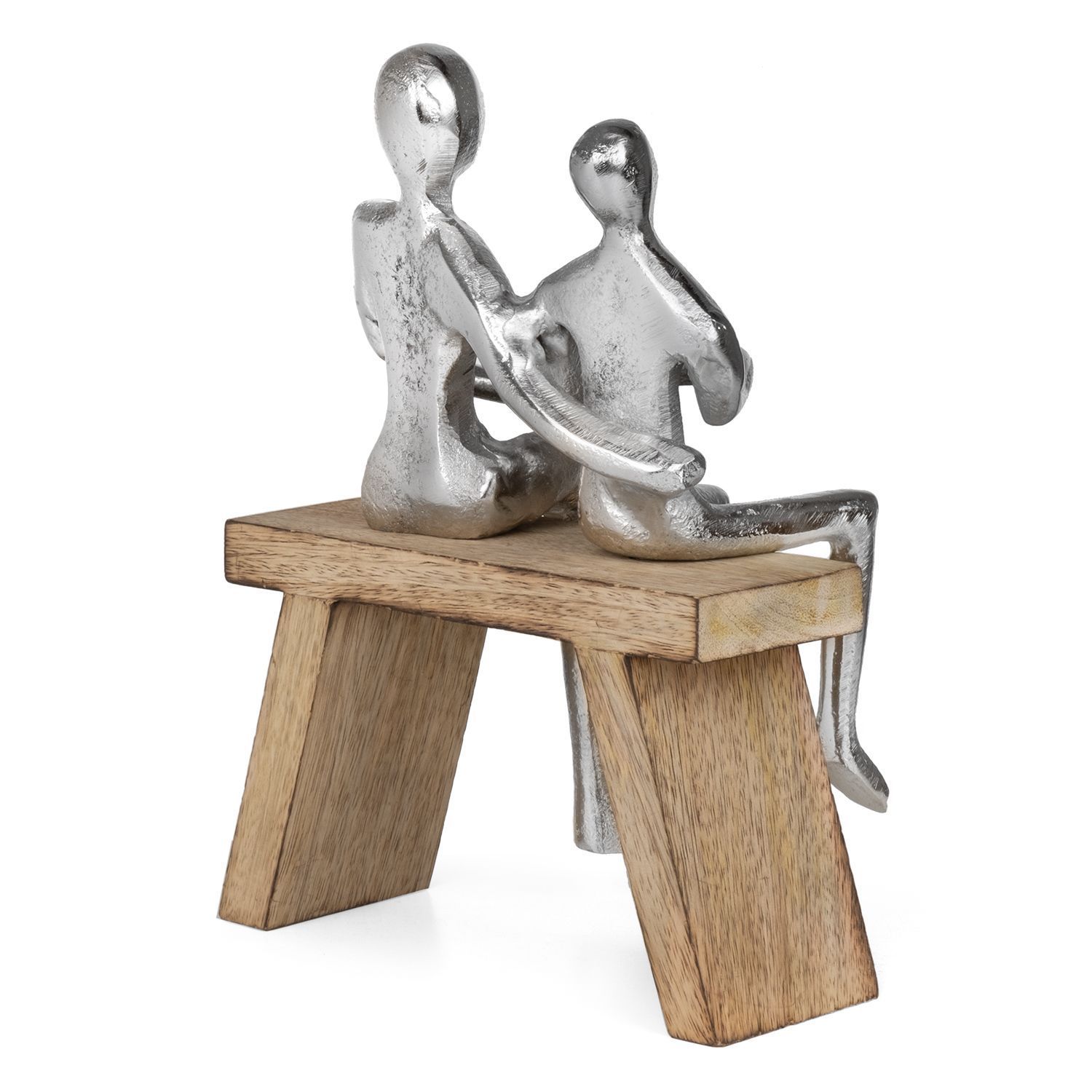 Moderne Dekofigur Paar auf Bank aus Aluminium auf Holzsockel - Skulptur Partnerschaft