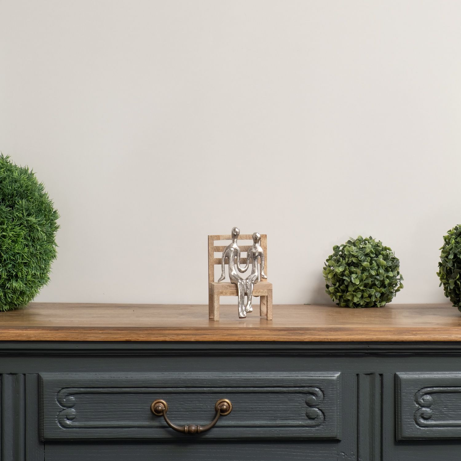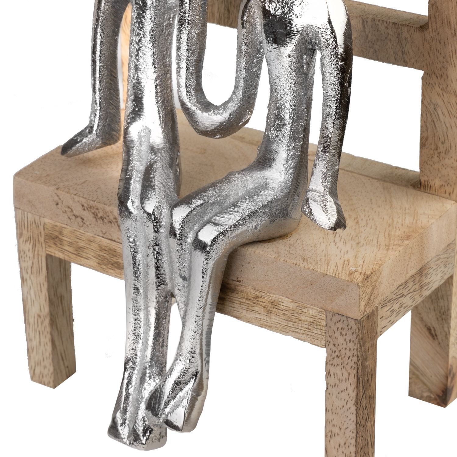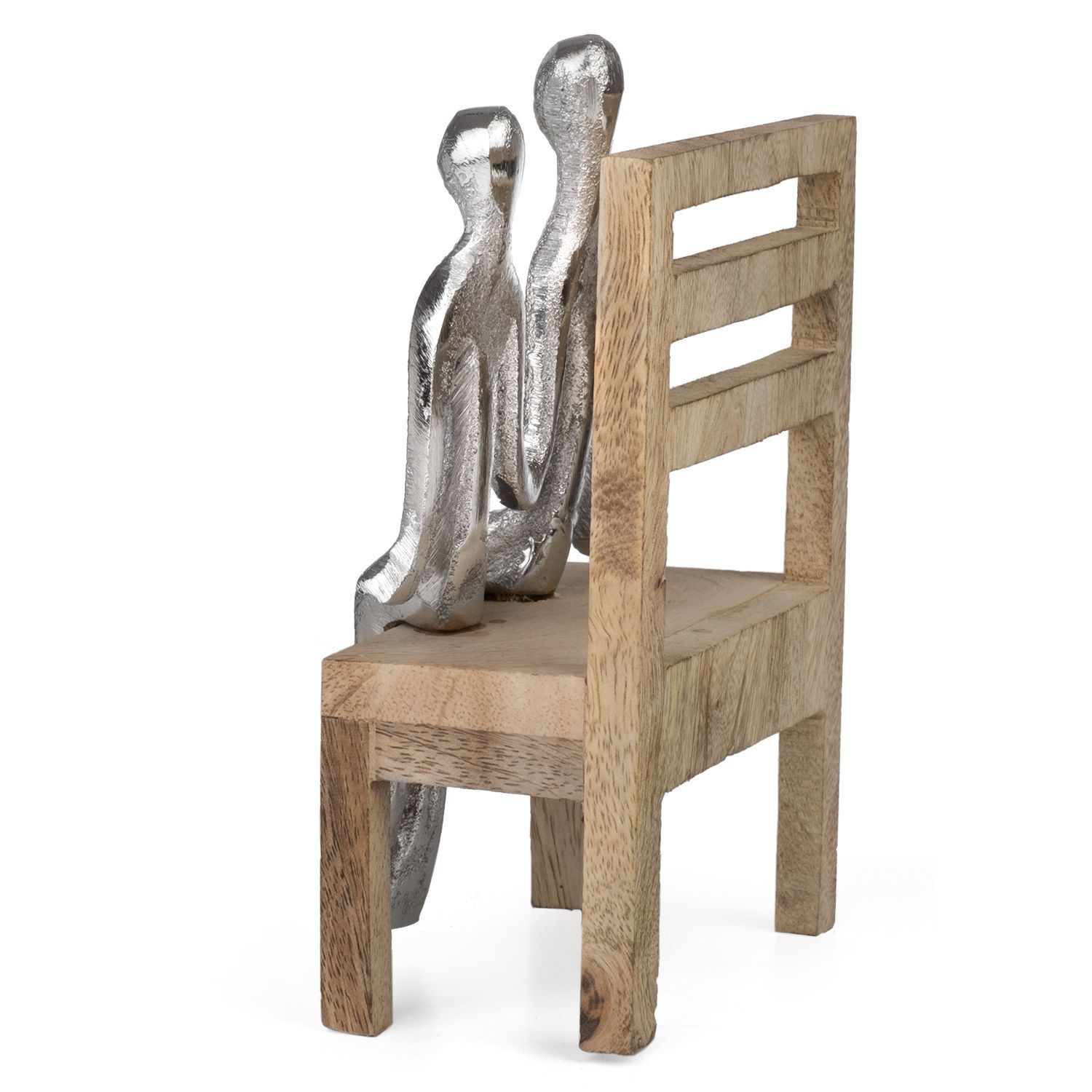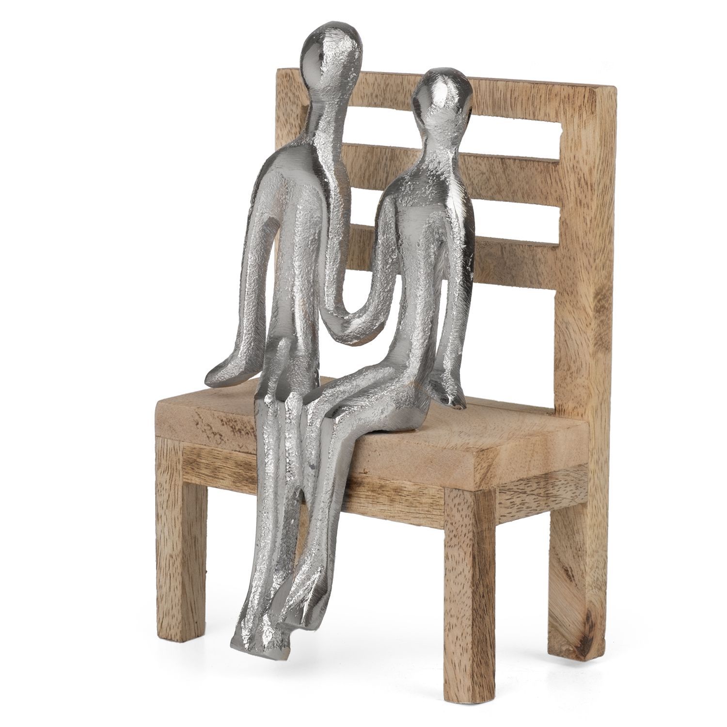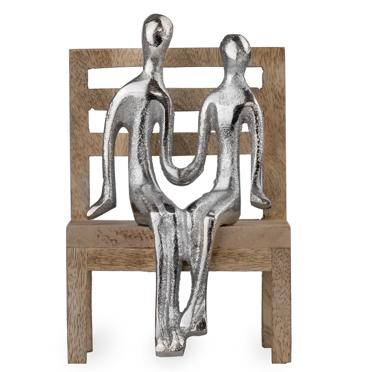 Moderne Dekofigur Paar auf Holzbank silberfarben Aluminium-Figur 15,5?cm Skulptur abs