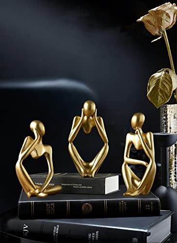 Moderne Denker Skulptur in Gold | Abstrakte Kunstfigur aus Harz