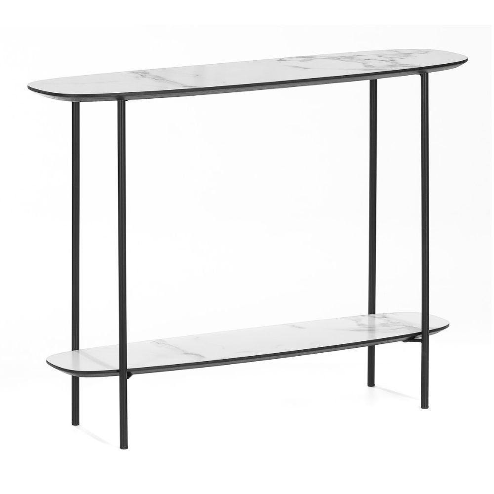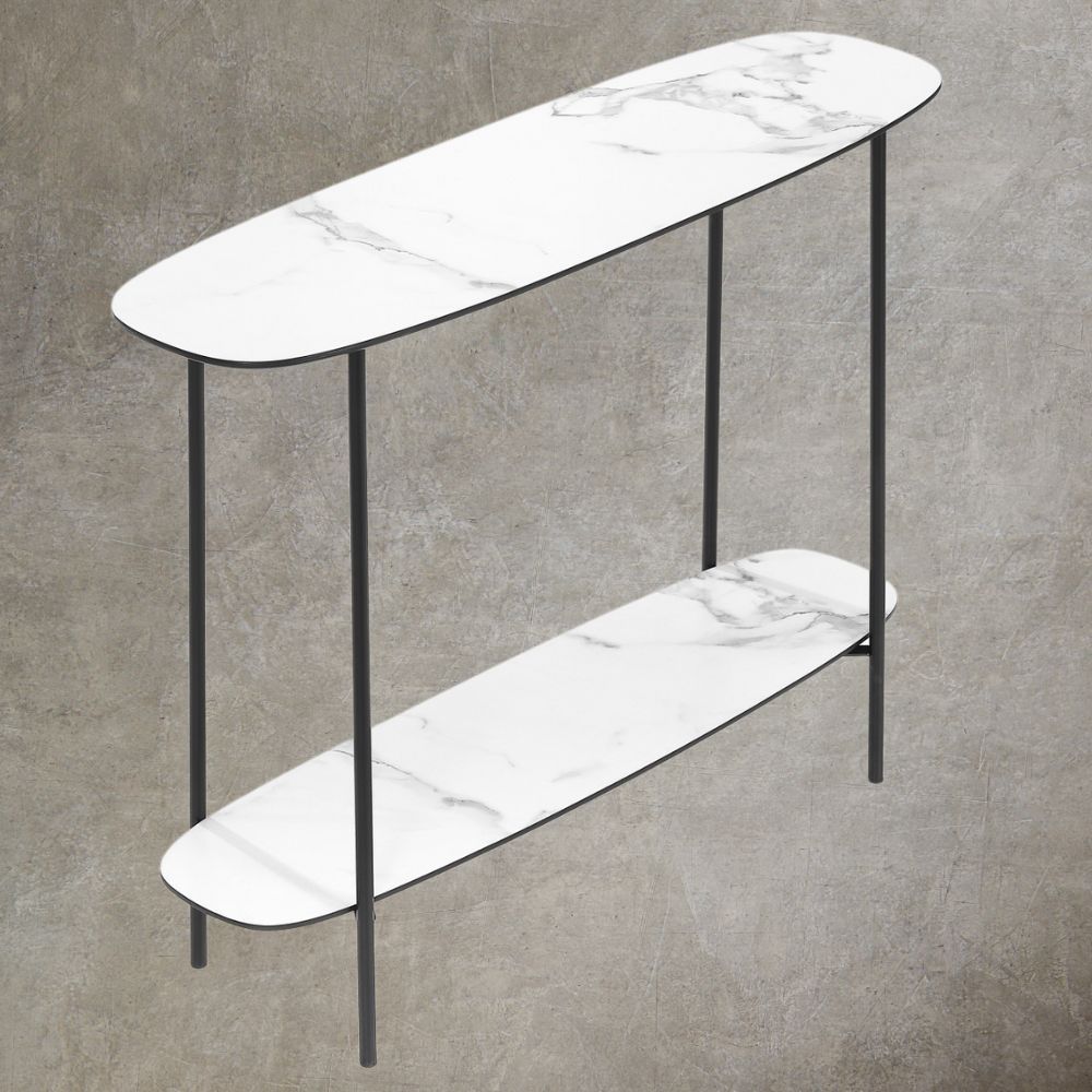 Moderne Design Konsole MARMOL 100cm weiss-schwarz Marmor-Dekor Metallgestell
