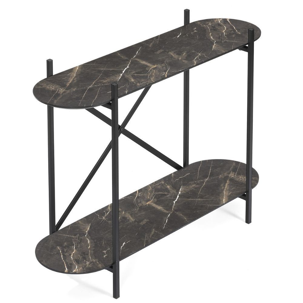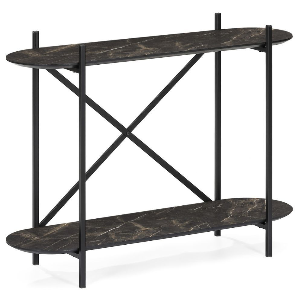 Moderne Design Konsole MARMOL-Plus 100cm schwarz Marmor-Dekor Metallgestell