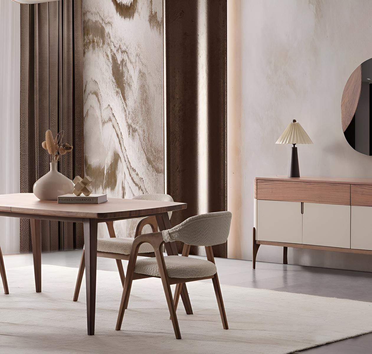 Moderne Esszimmer Garnitur Rechteckiger Brauner Esstisch 4x Stühle