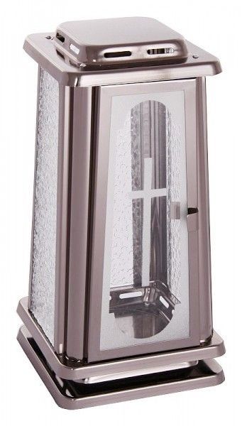 Moderne Grablampe silbergrau mit Kreuz Grablaterne Grableuchte Grablicht
