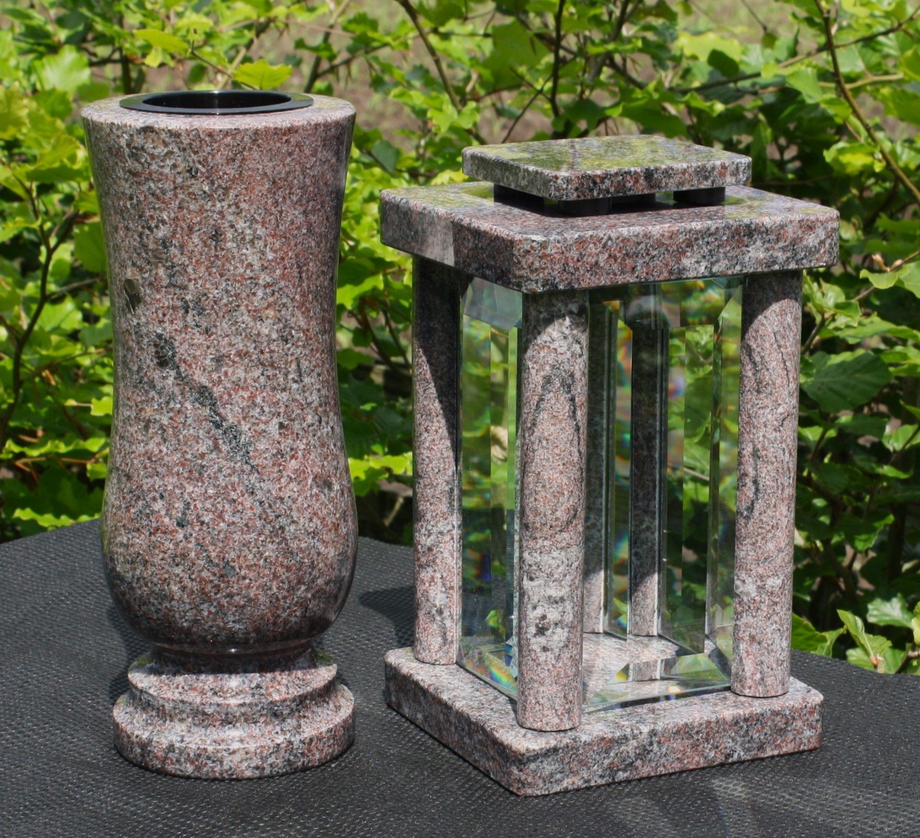 moderne Grablaterne mit Vase aus Granit Paradiso