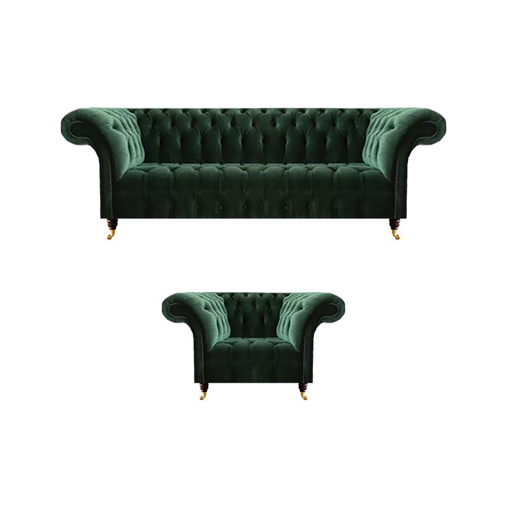 Moderne Grüne Chesterfield SItzgarnitur Komplette Couchen Sessel 2tlg