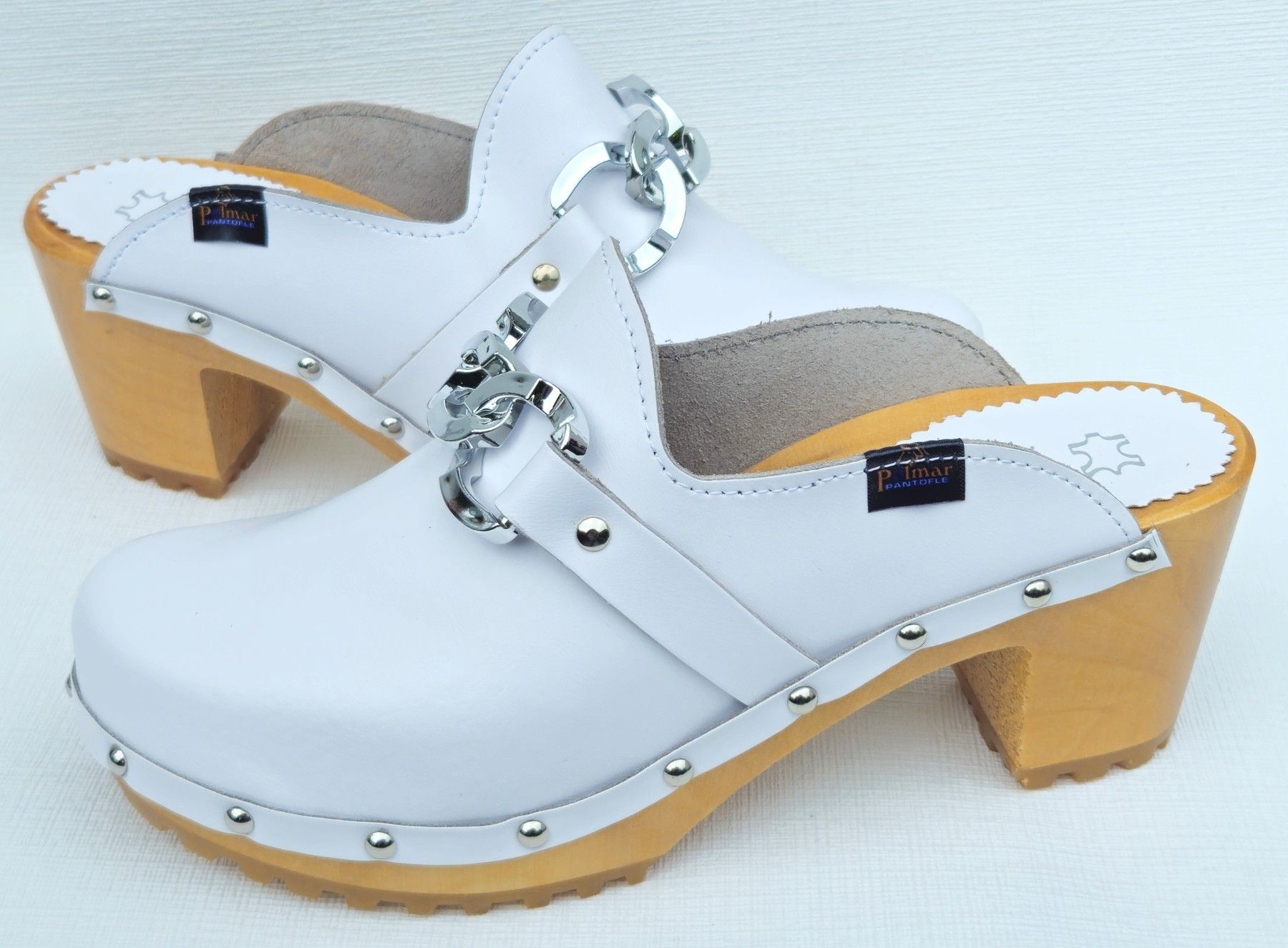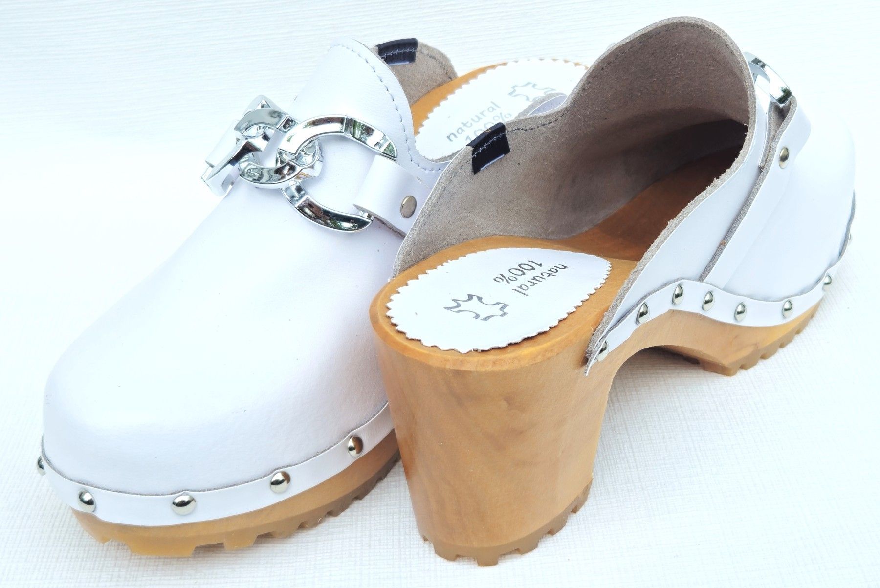 Moderne High Heels Holz Clogs Holz Pantolette Gr.36-37-38-39-40-41 Glattleder Rinds