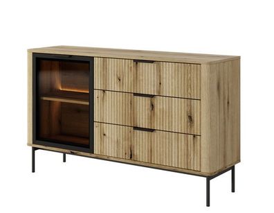 • Moderne Wilson D Kommode mit Glastür und LED-Beleuchtung – 138 cm, Evoke Eiche