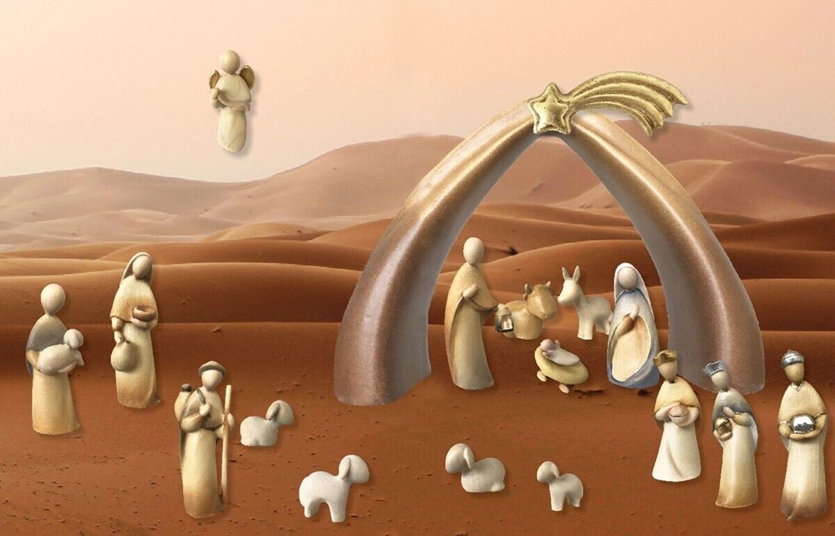 Moderne Krippe mit Krippenfiguren Stella Kollektion 17 Teilig H 12 cm Holzfigur