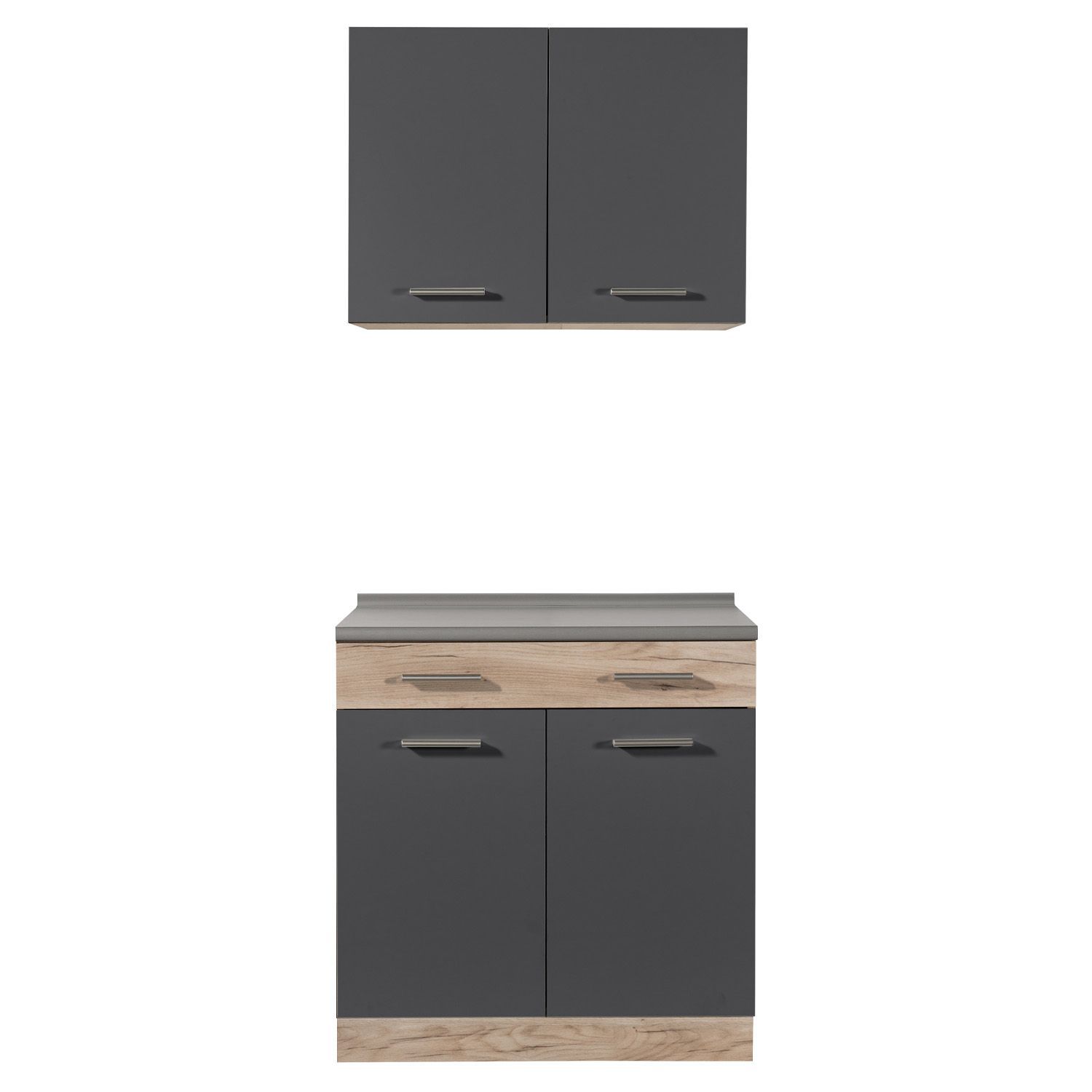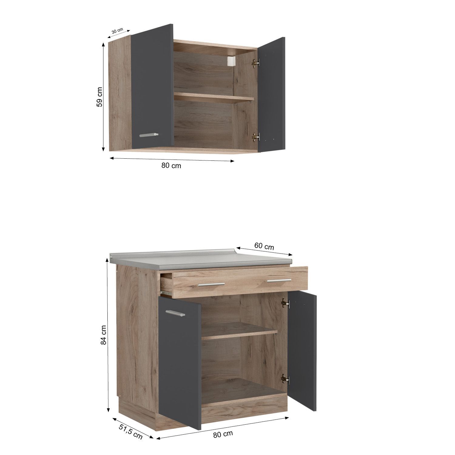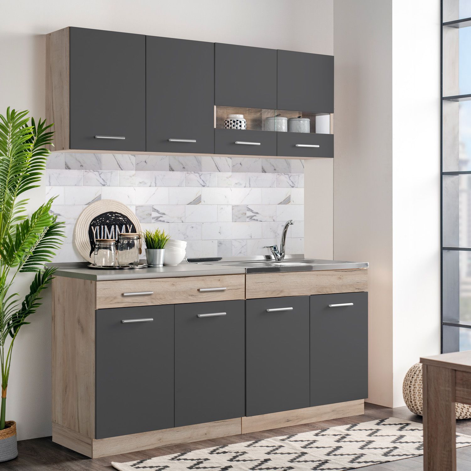Moderne Küche Eiche Grau Küchenzeile ohne Geräte Einbauküche Singleküche Küchensch