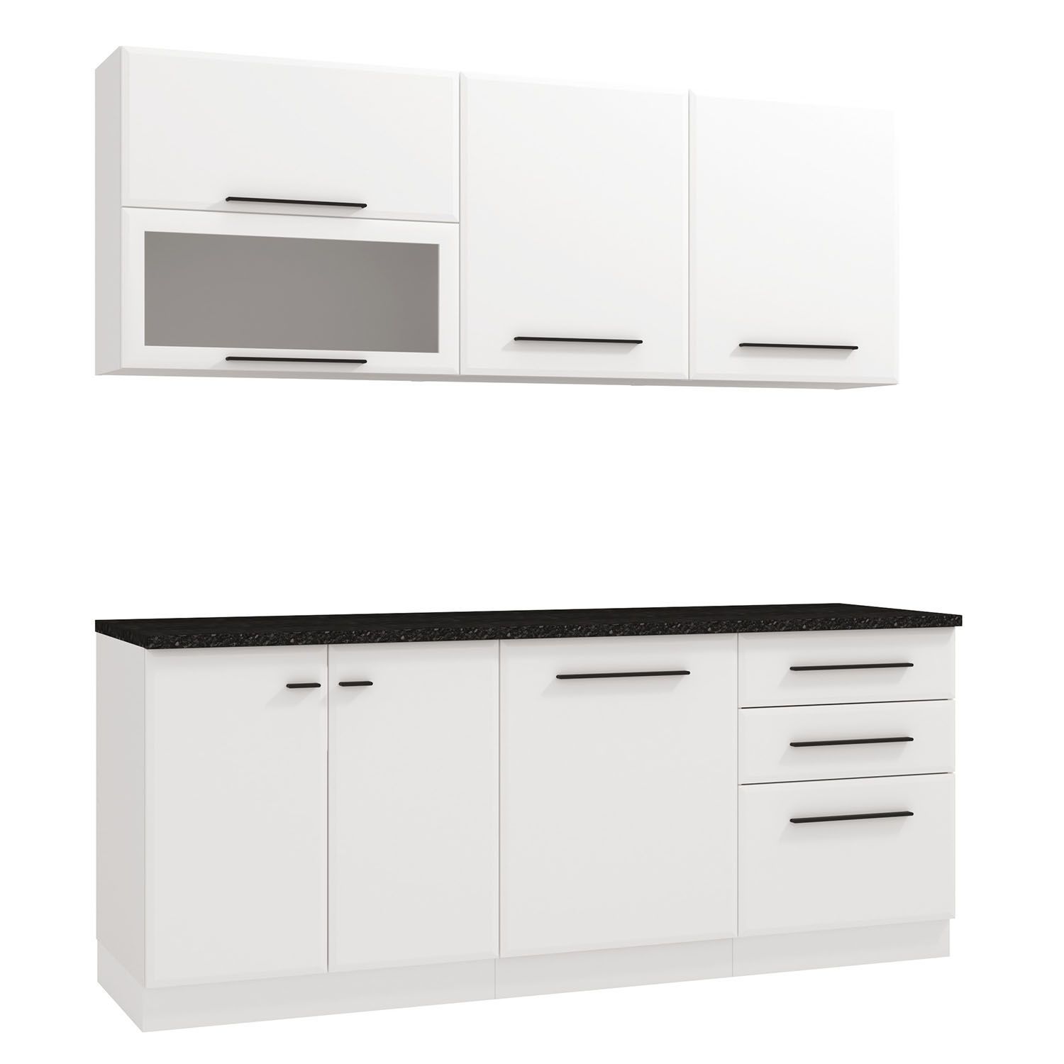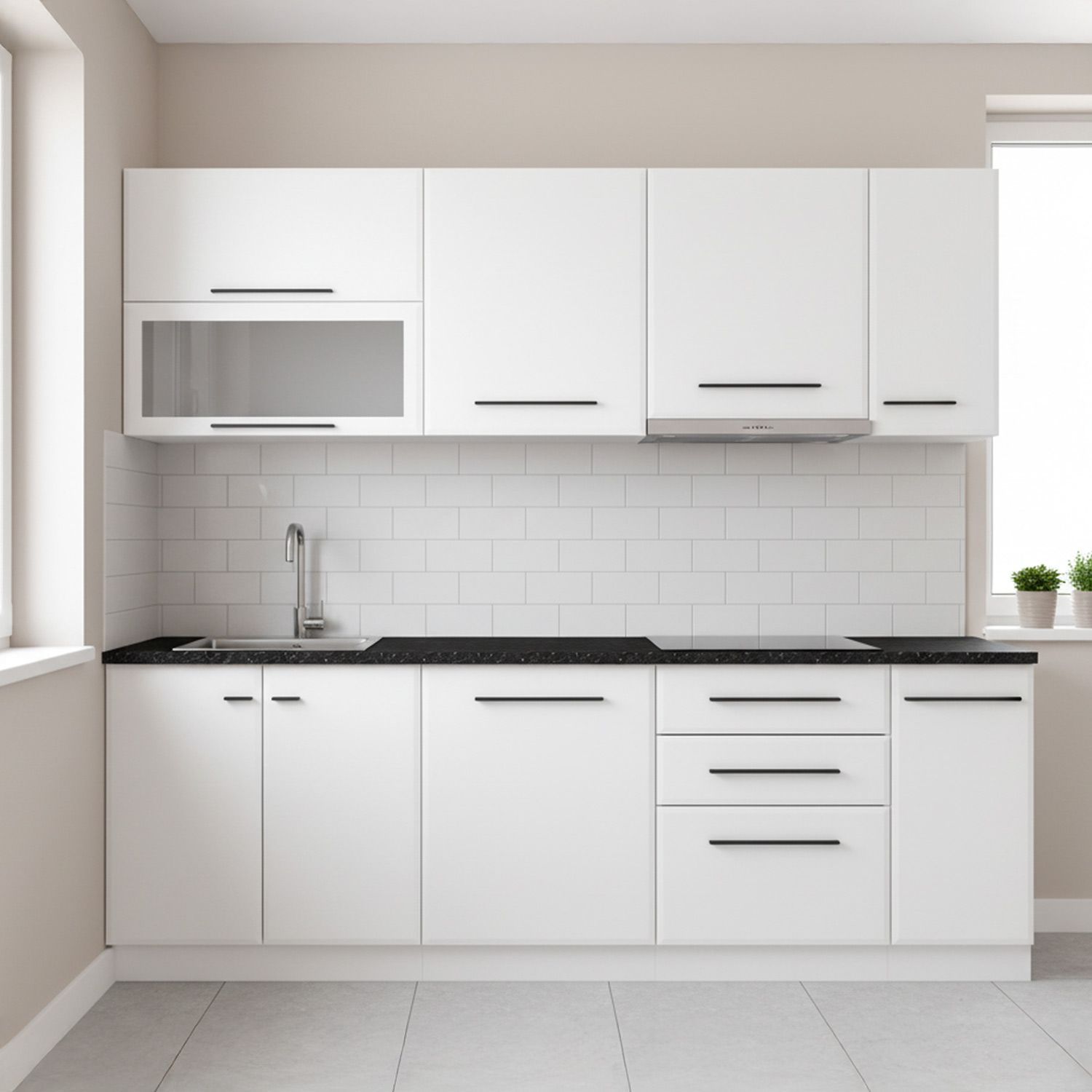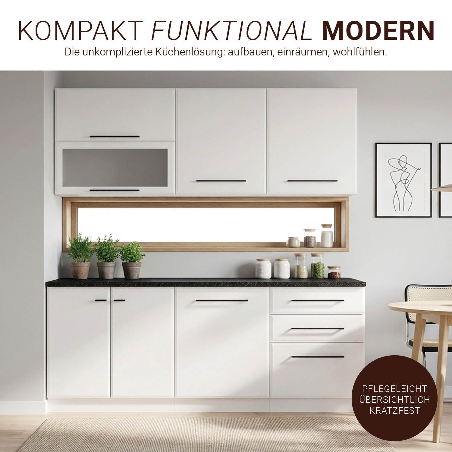• Moderne Küche Küchenzeile ohne Geräte 200 cm Weiß Einbauküche Singleküche Küchensc