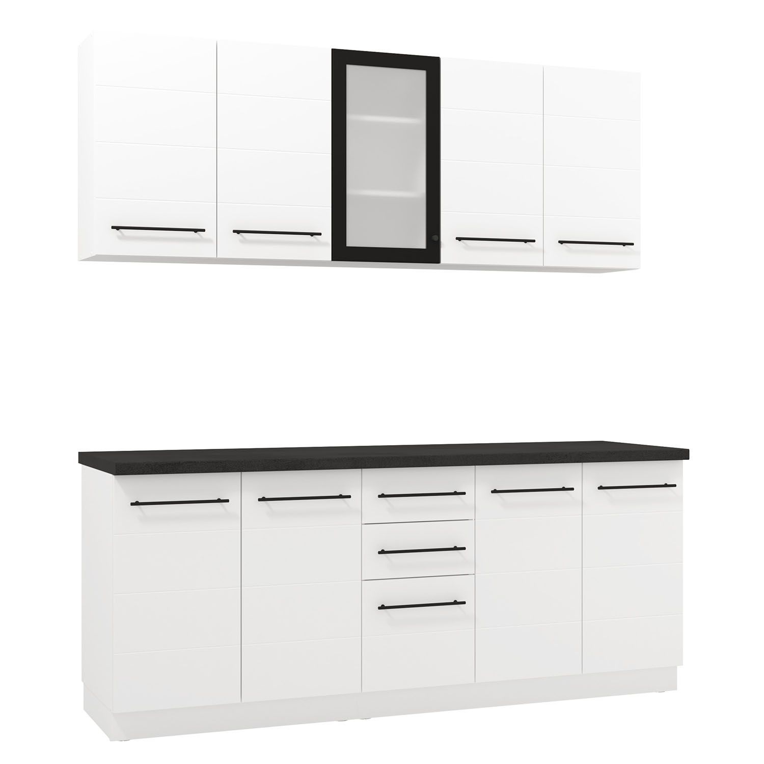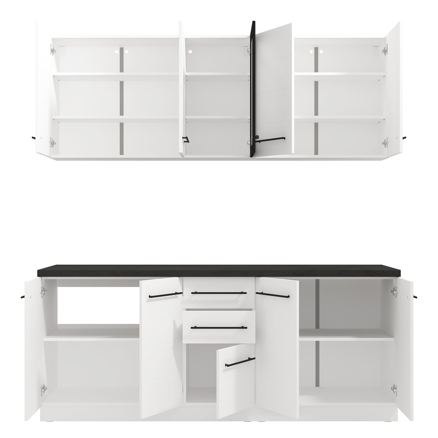 Moderne Küche Küchenzeile ohne Geräte 200 cm Weiß Einbauküche Singleküche Küchensc