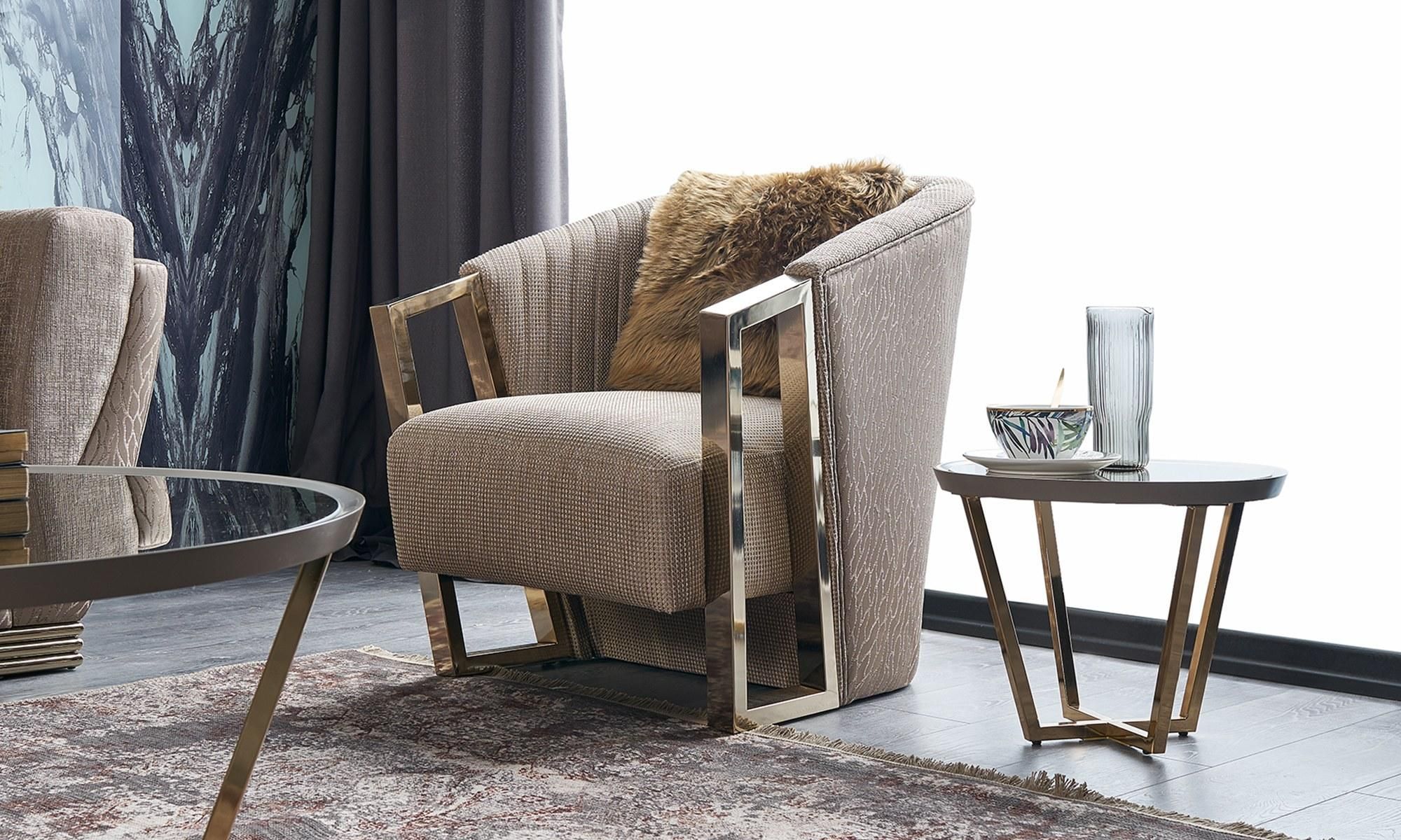 Moderne Sessel Einsitzer Stoff Wohnzimmer Braun Polster Sitzer Sitz
