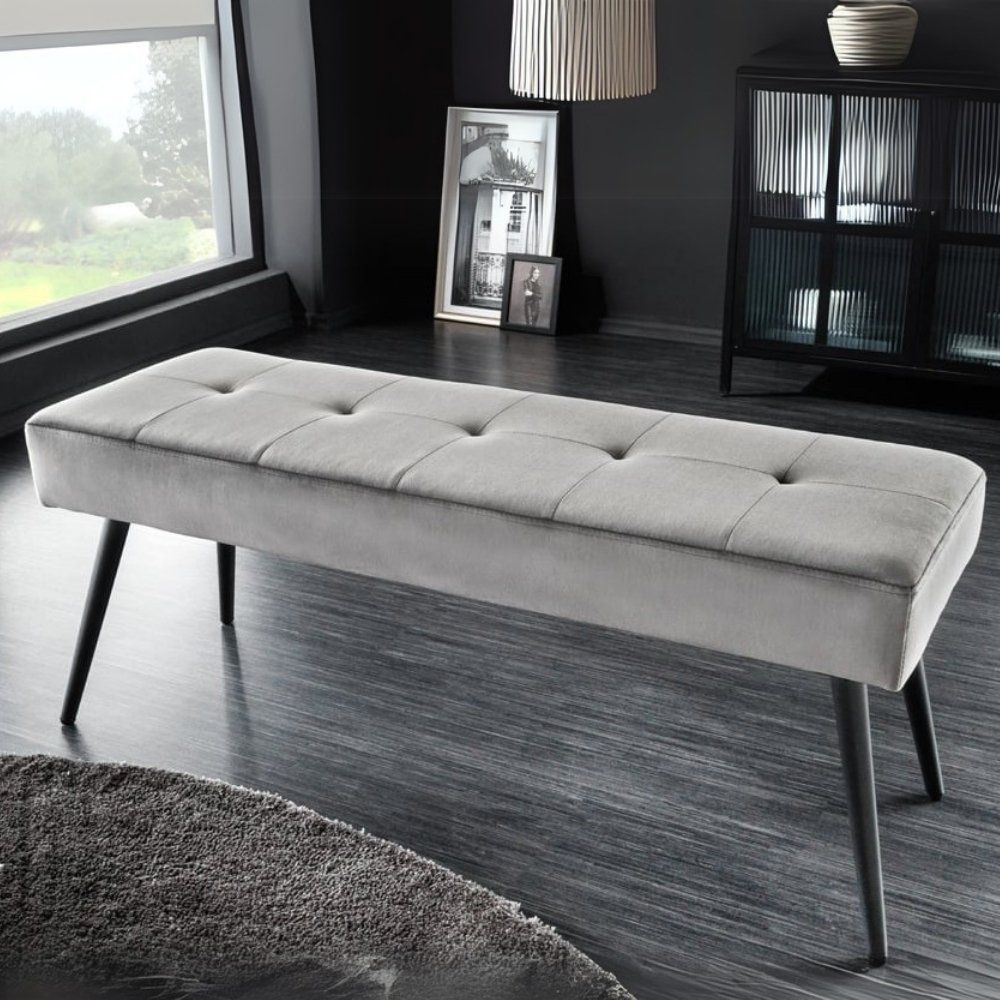 Moderne Sitzbank BELLE 100cm dunkel-grau Samt schwarzes Gestell