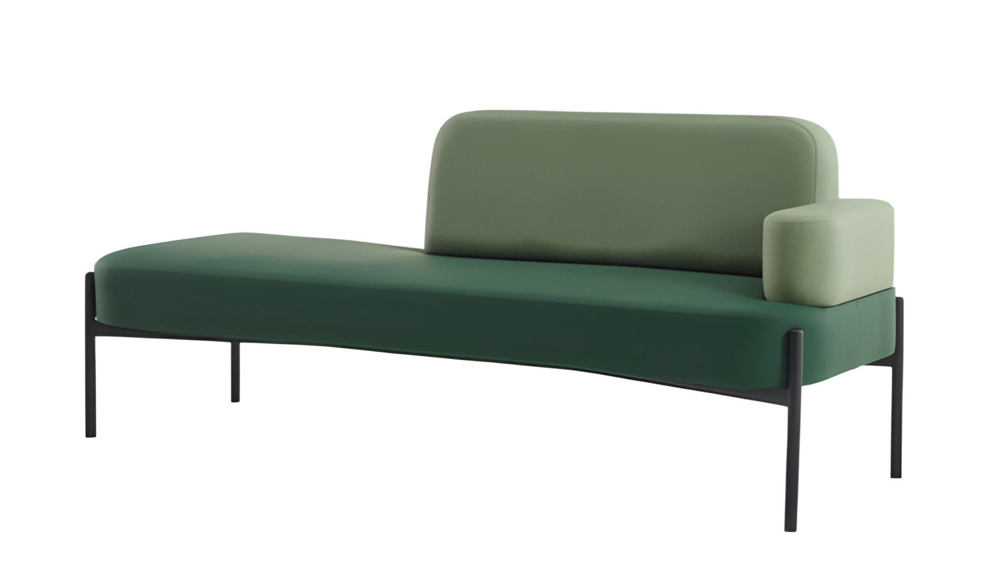 Moderne Sitzbank mit minimalistischer Rückenlehne und Armlehne