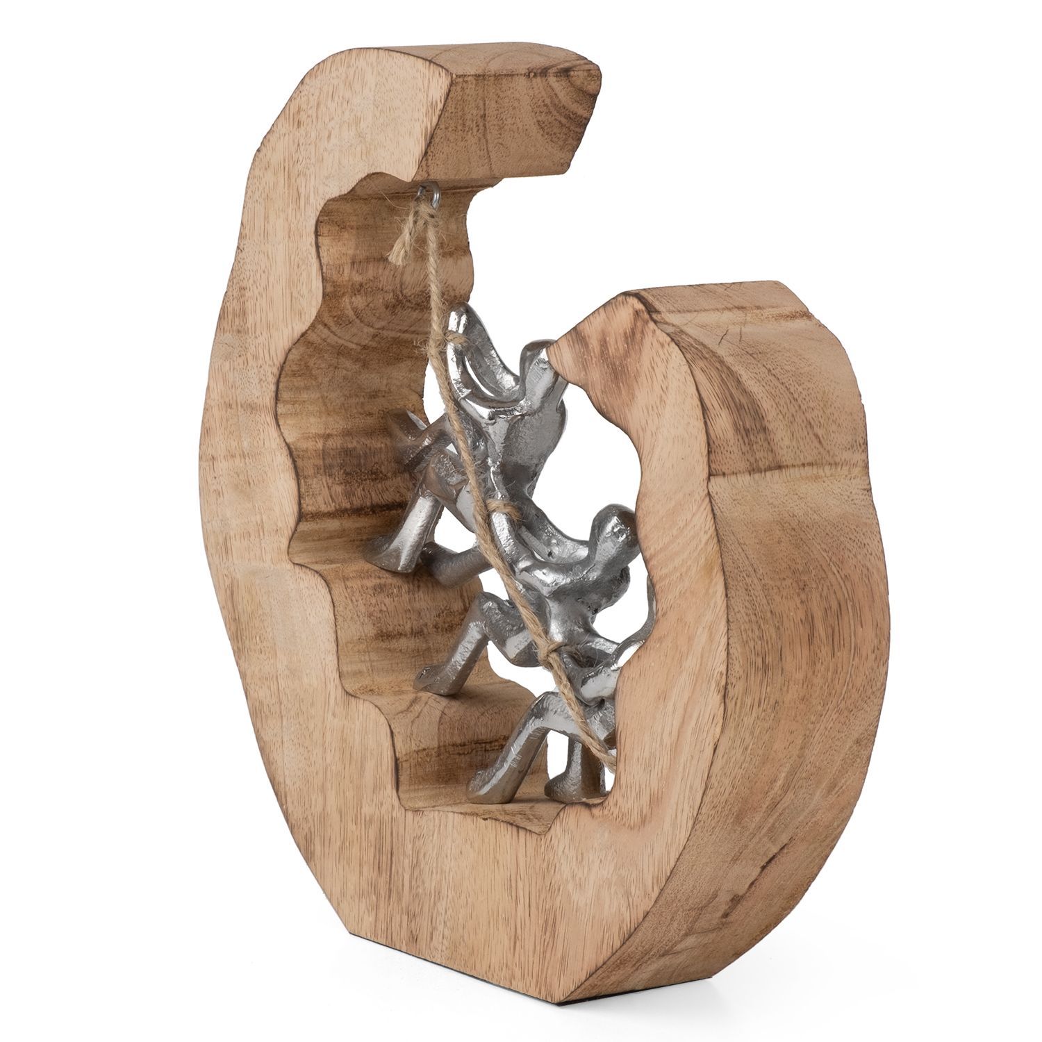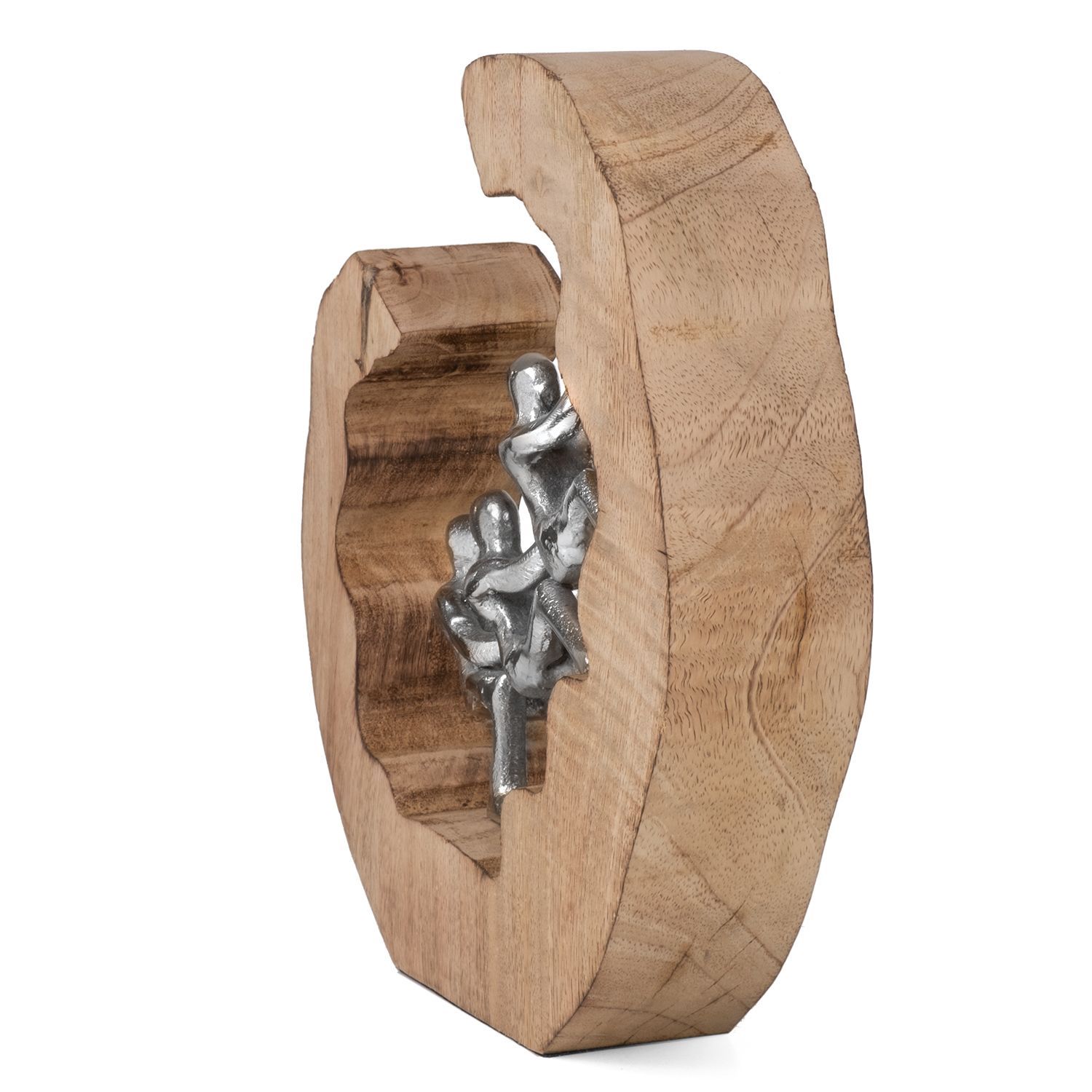Moderne Skulptur Teamwork aus Aluminium und Mangoholz 22,5 x 5 x 24 cm - Dekofigur mi