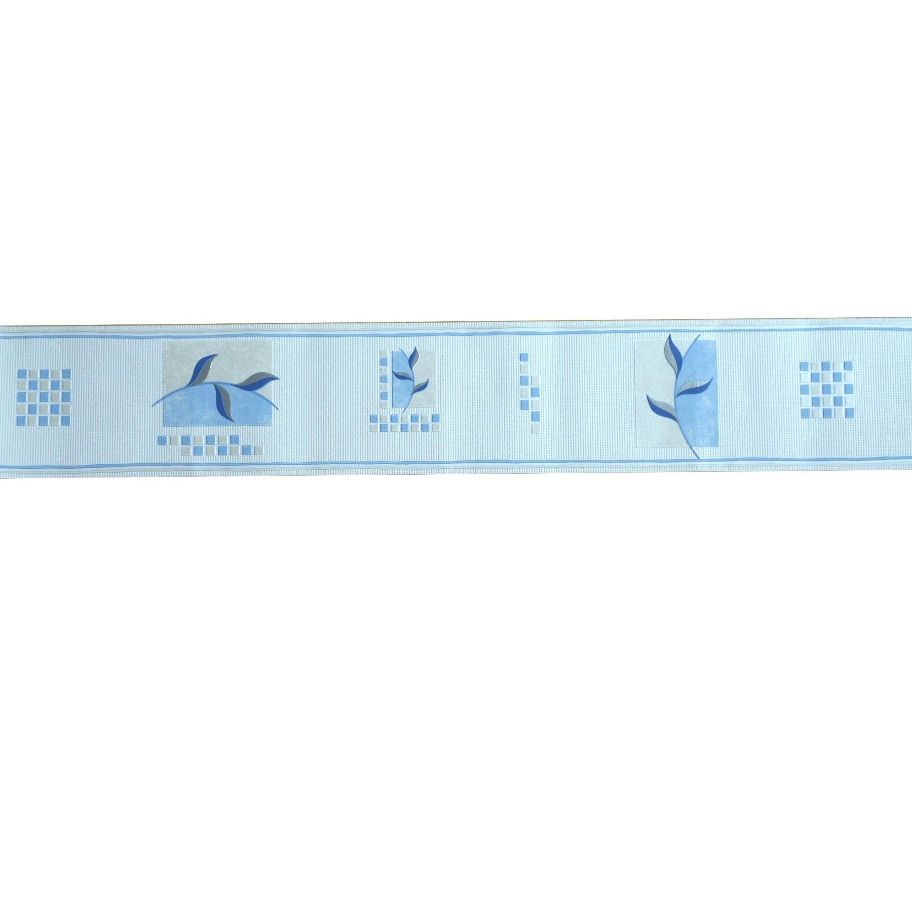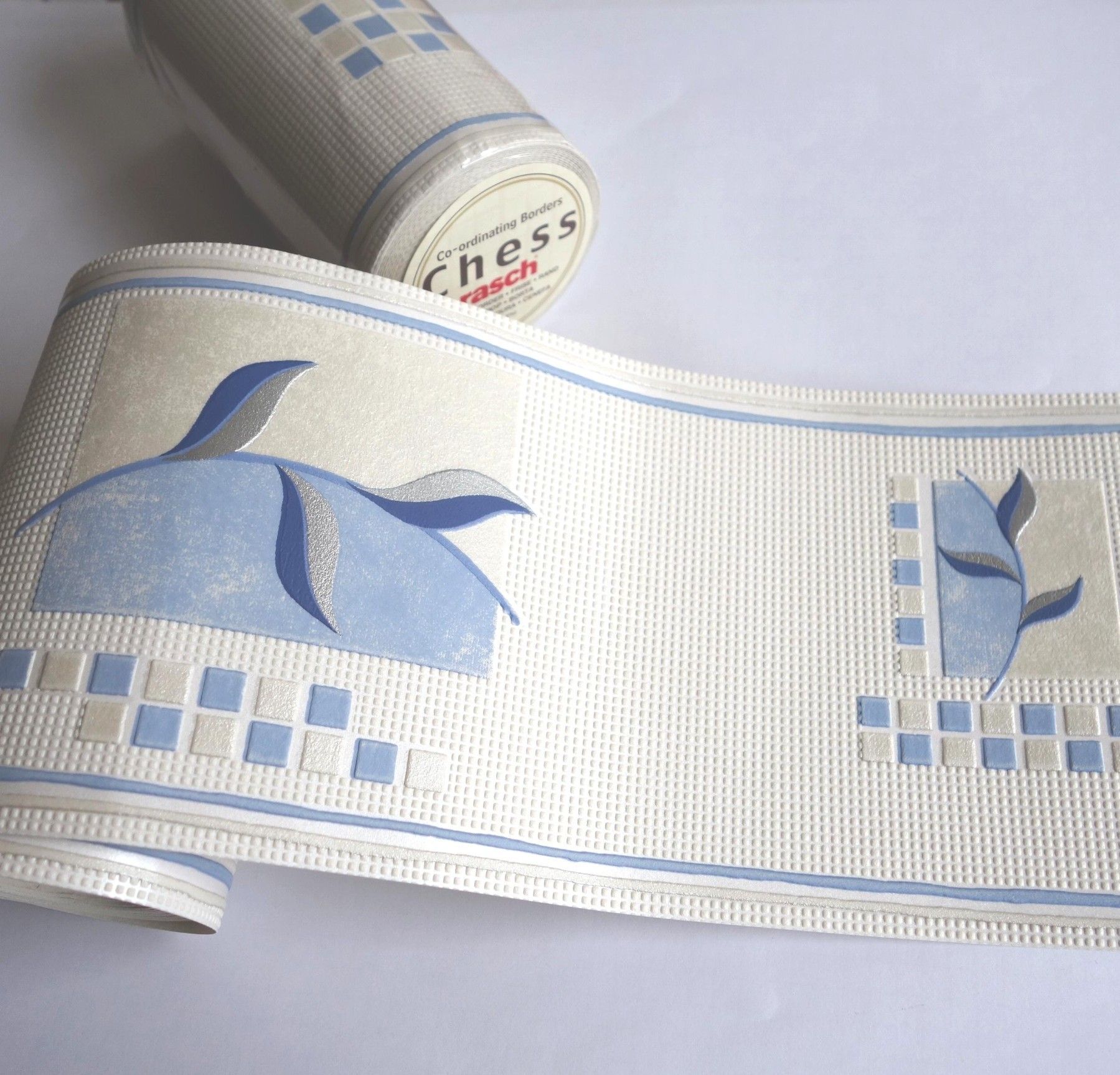 moderne Tapetenborte Bordüre Rasch 563016 "Chess Creme Blau" 5 m Borte