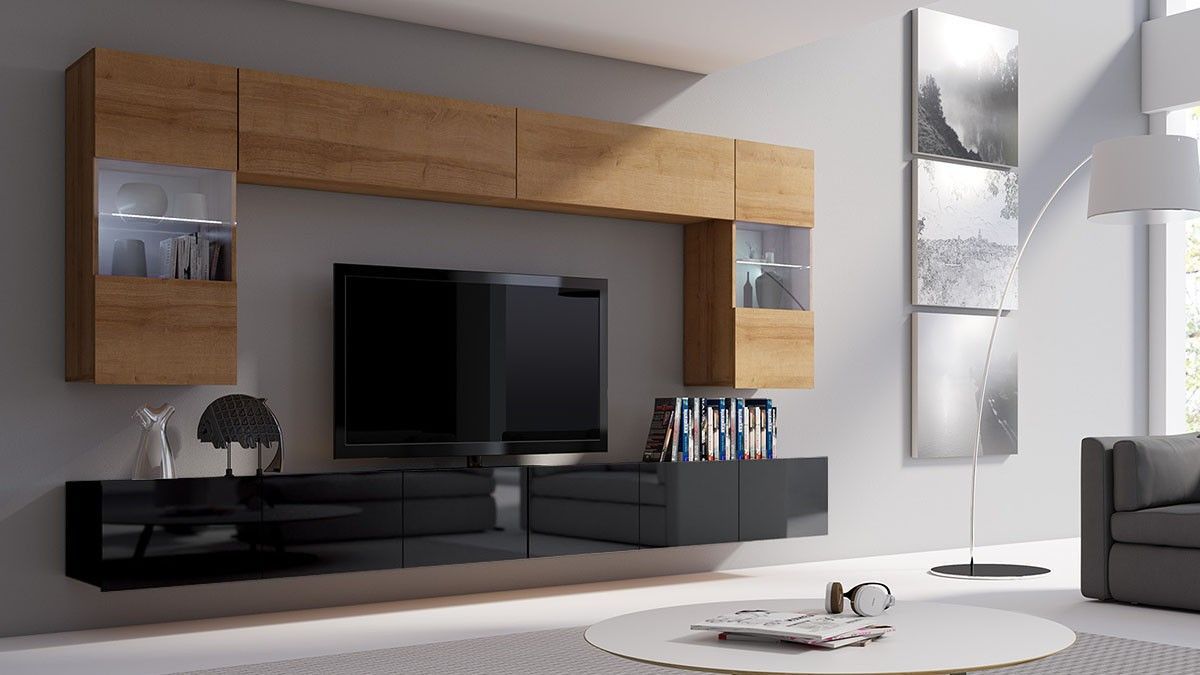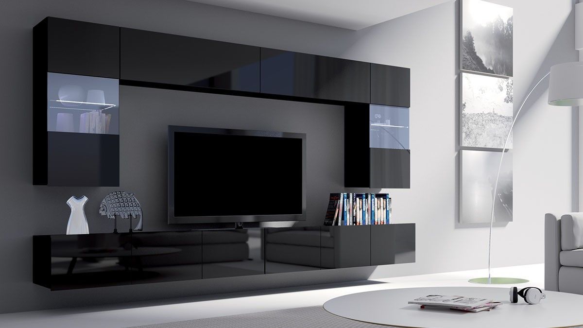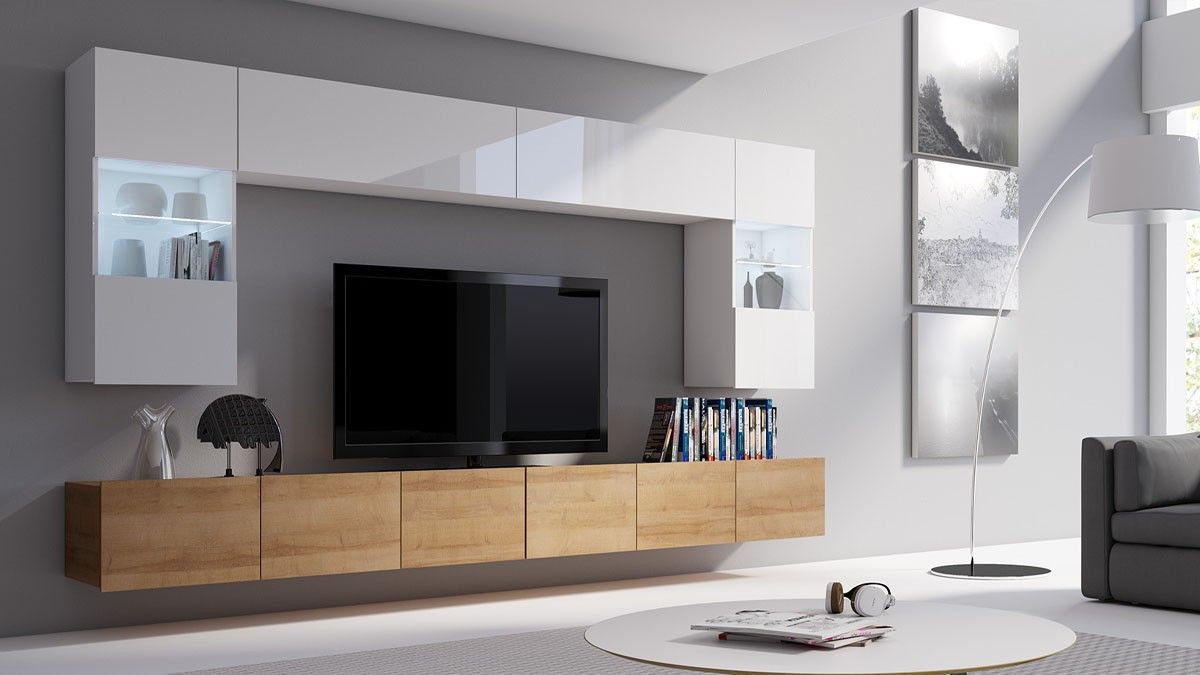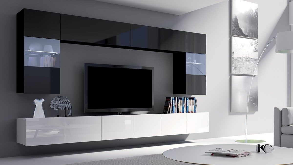 Moderne Wohnwand Calabrini-1 Wohnzimmer-Set Hängewohnwand Hochglanz 10-Farben