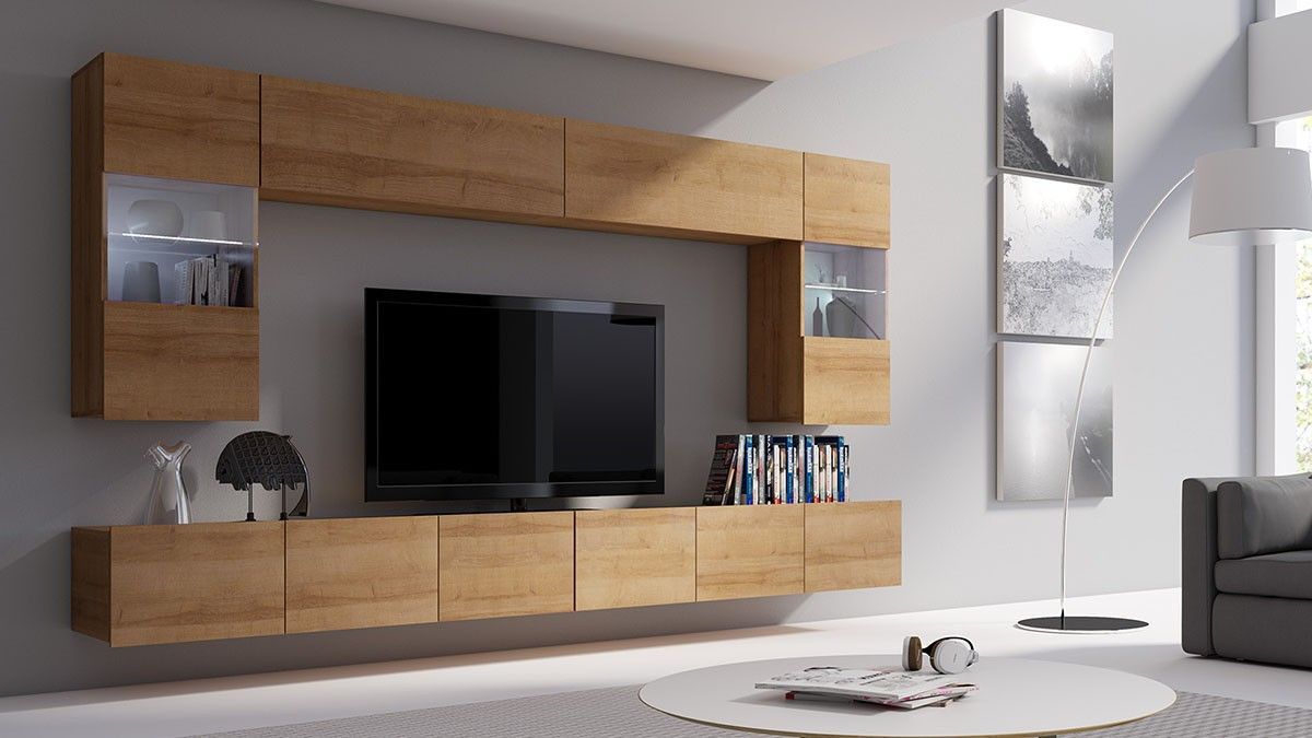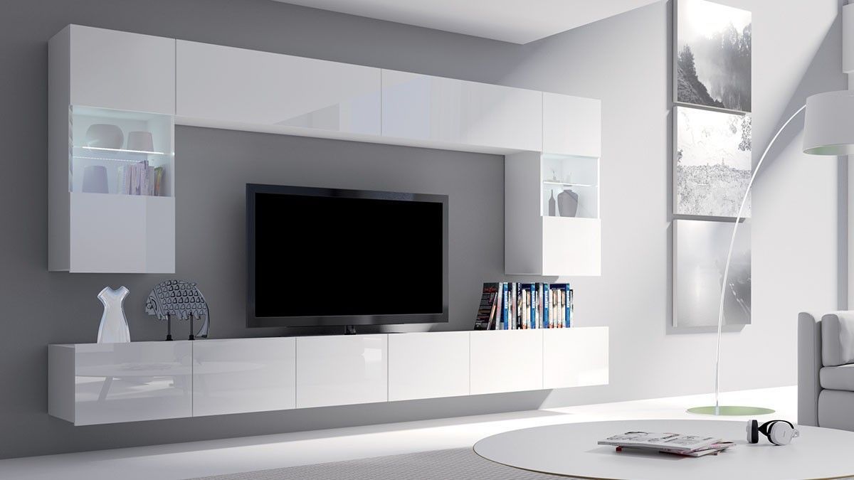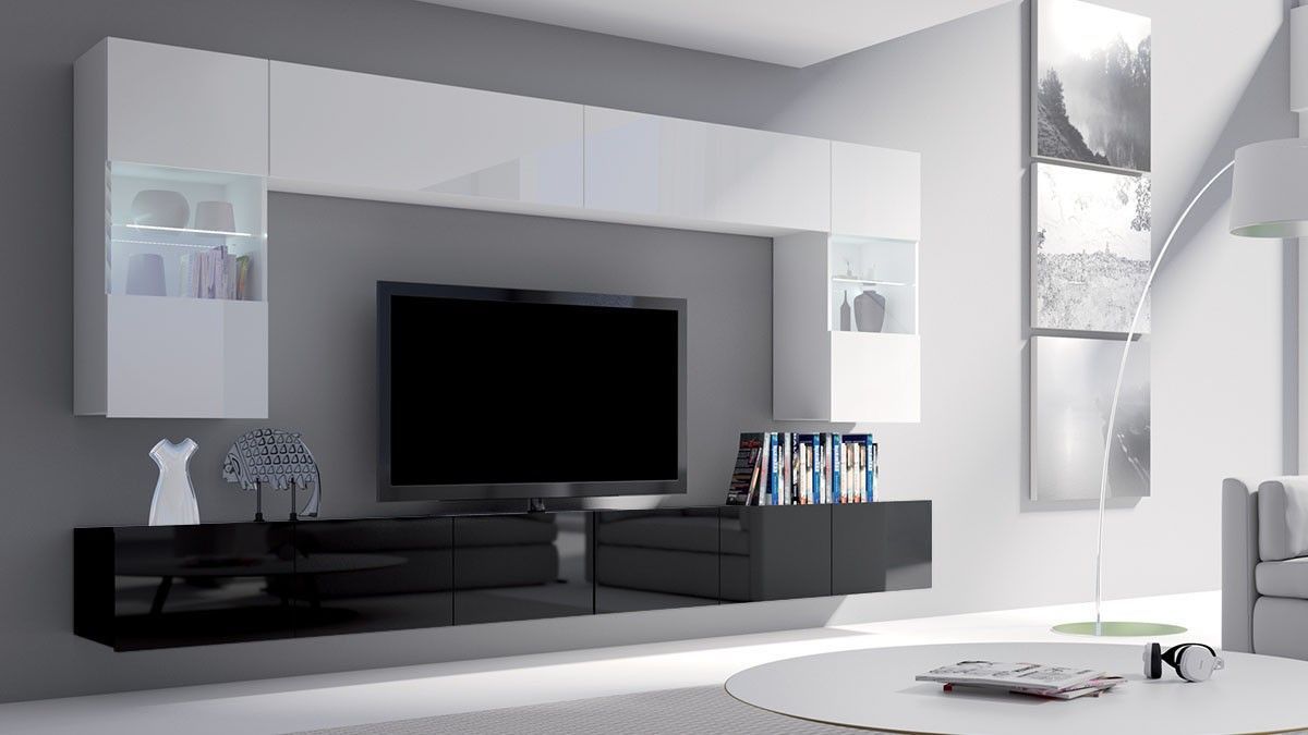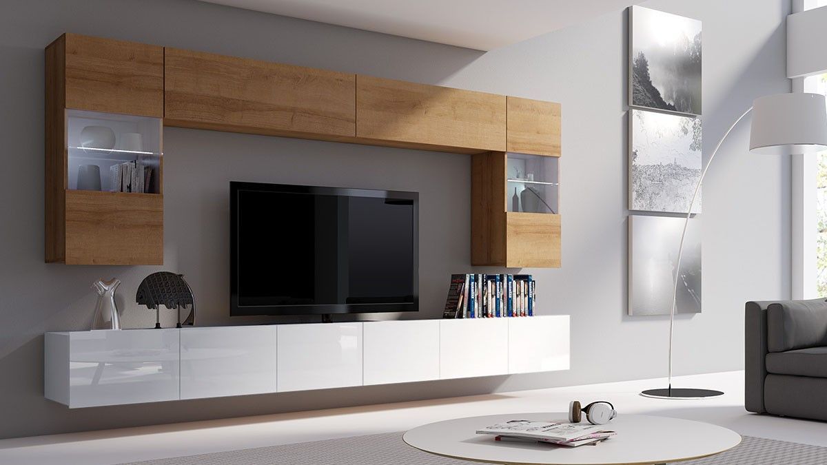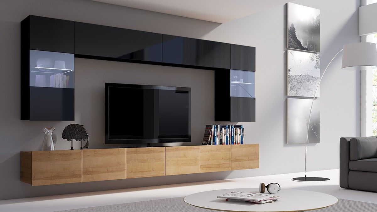 Moderne Wohnwand Calabrini-1 Wohnzimmer-Set Hängewohnwand Hochglanz 10-Farben