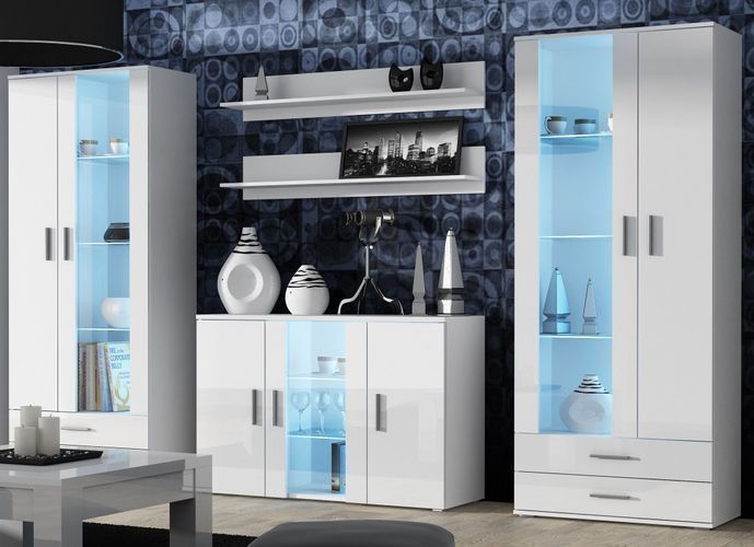 Moderne Wohnwand SOHO 10 in Weiß mit LED Beleuchtung