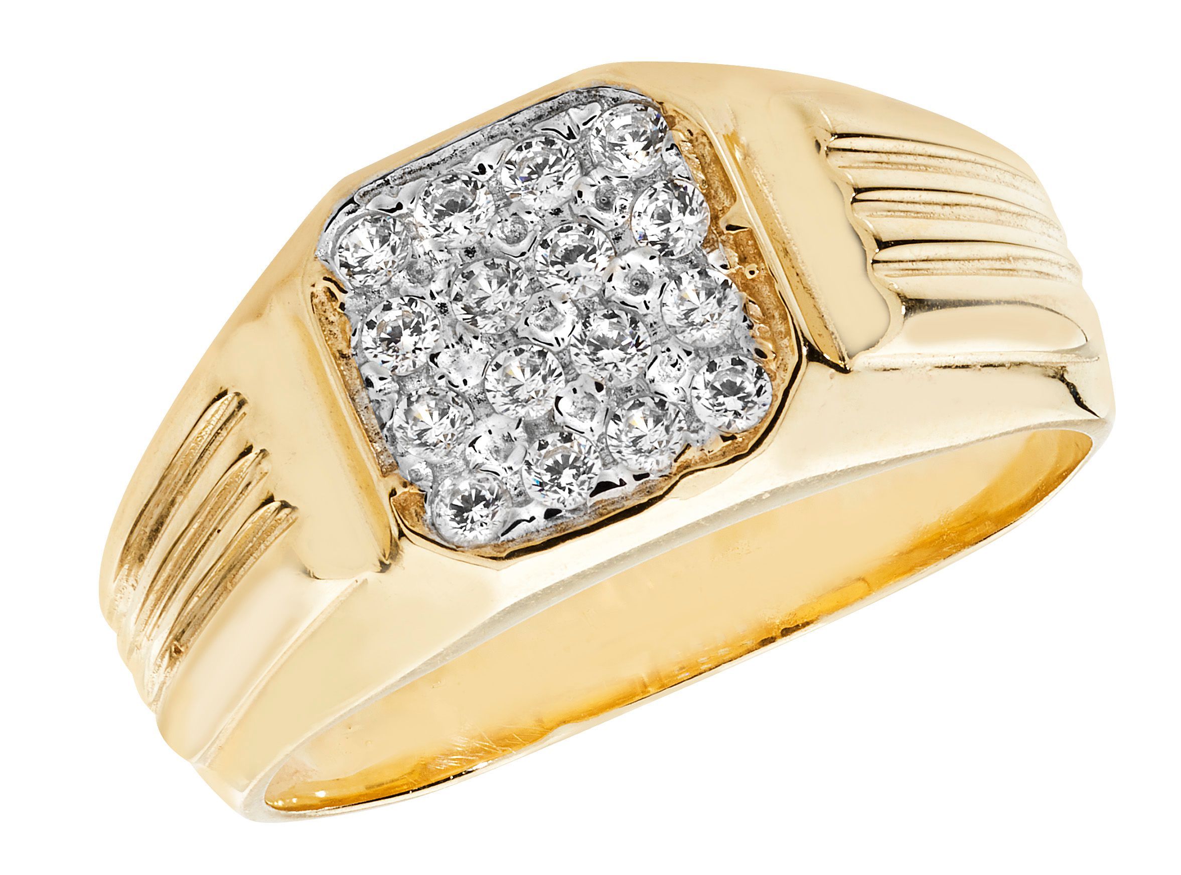Moderner 9 ct/Karat Gelb Gold Herren - Ring mit Zirkonia (synth.)
