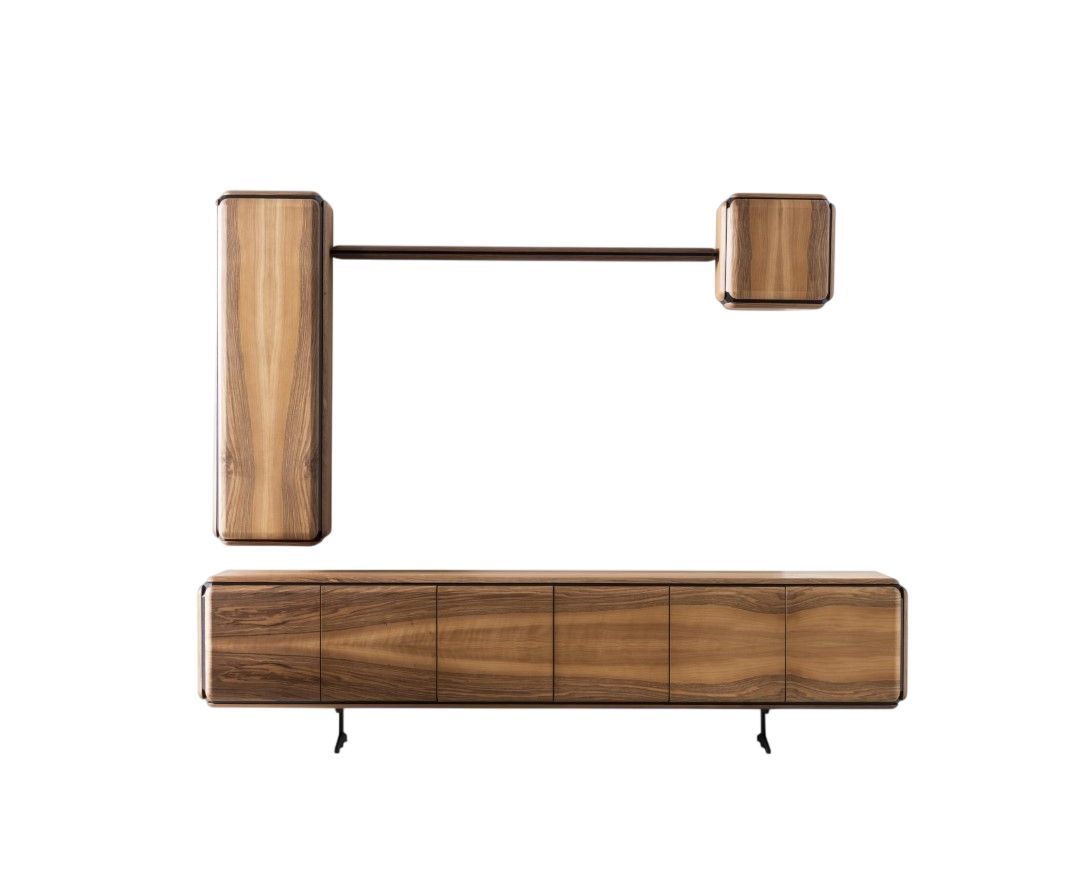 Moderner brauner Holz-Wohnzimmerset mit Wandschränken, Wandregal