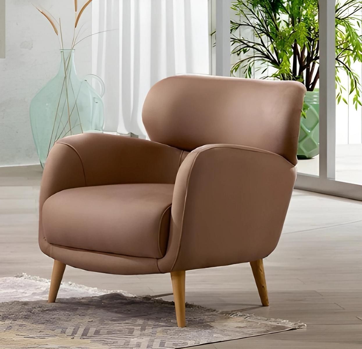 Moderner brauner Stoffsessel aus Holz für stilvolles Wohnzimmer