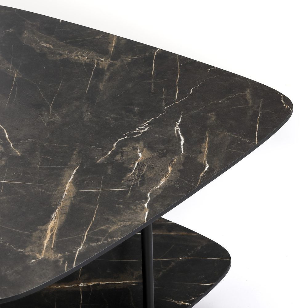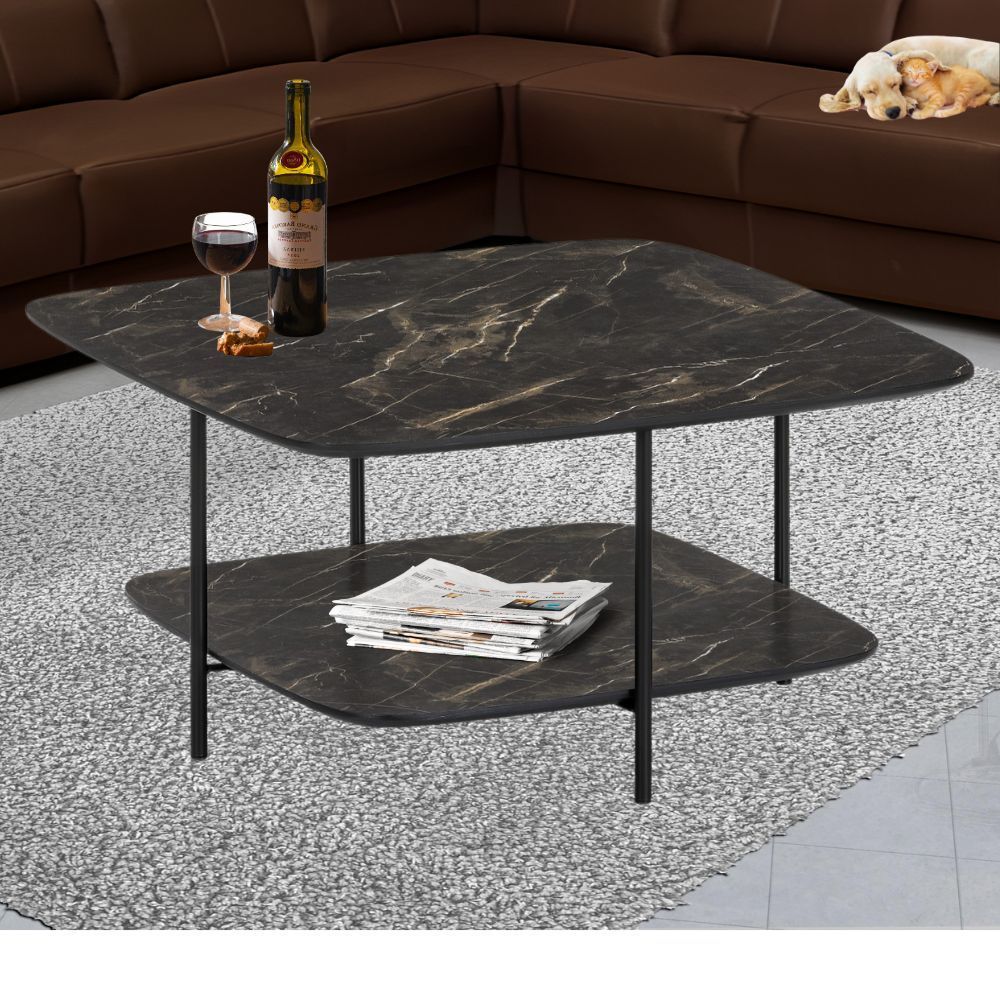 Moderner Design Couchtisch MARMOL 75cm schwarz Marmor-Optik Metallgestell