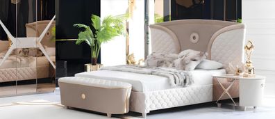Weiß beige Bett Schlafzimmer Betten Doppelbetten Schlafbetten Textil