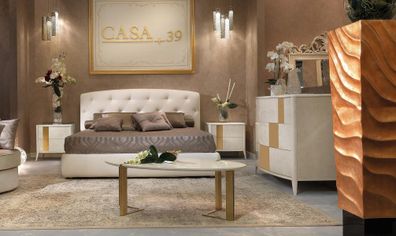 Goldenes Bett Doppelbett Schlafzimmer Betten Möbel designer Doppelbett Beige