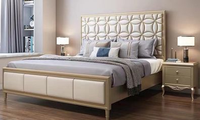 Polster Beige Doppelbetten Bett Betten Doppelbett Schlafzimmer Kunstleder Neu
