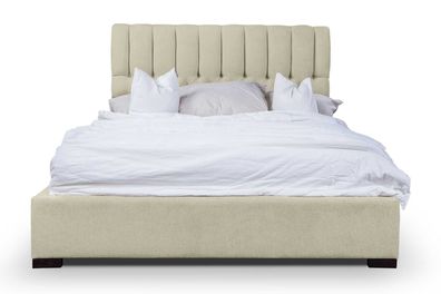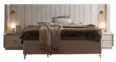 Bett Beige Doppelbett Holz Modern Betten Luxus Stoff Bett Schlafzimmer