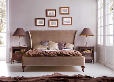 Bett Betten Doppelbett Schlafzimmer Holz Polster Braun Doppelbetten Italienische