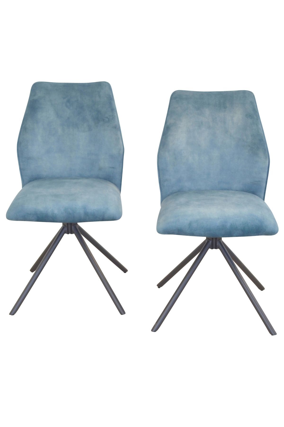 Moderner, drehbarer Polsterstuhl "Caro", Vintage-Bezug, blau (2er-Set)