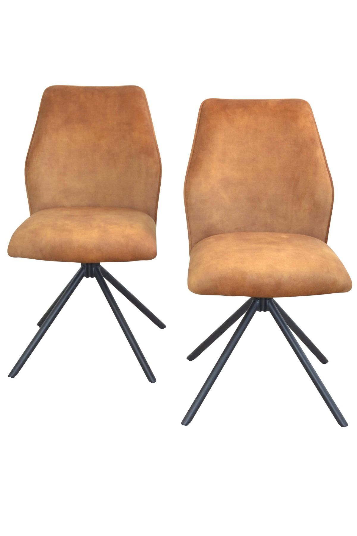 Moderner, drehbarer Polsterstuhl "Caro", Vintage-Bezug, ockerbraun (2er-Set)