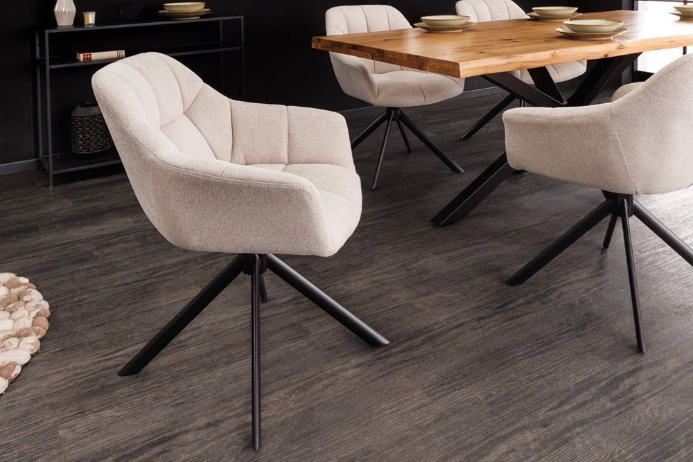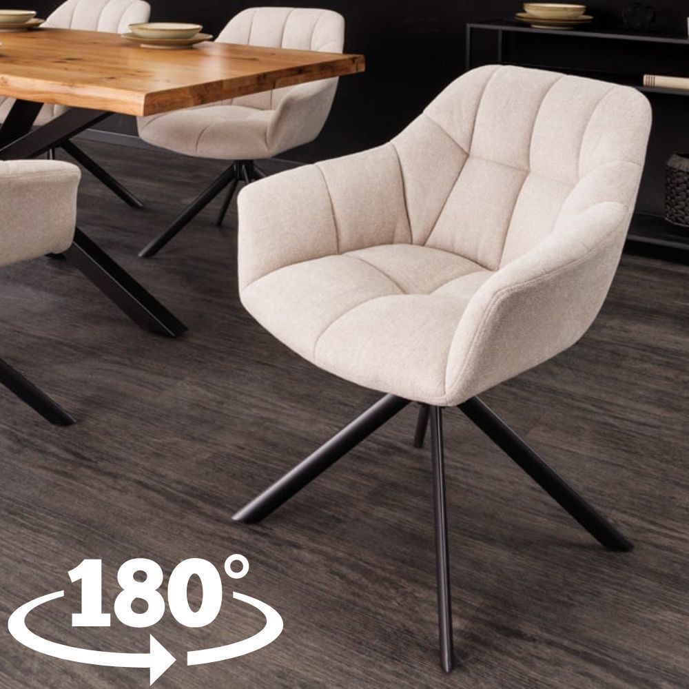 Moderner Drehstuhl LYON beige Strukturstoff schwarzes Metallgestell