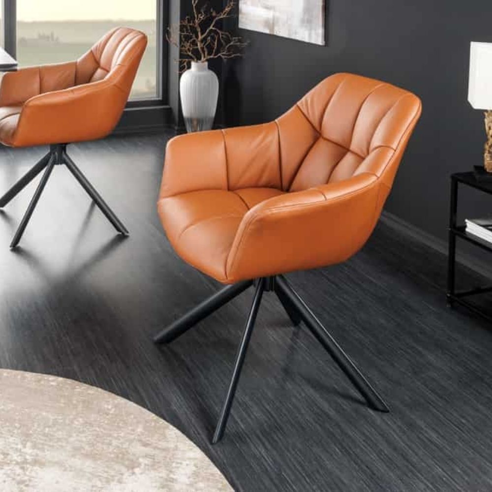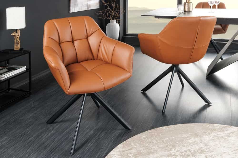 Moderner Drehstuhl LYON cognac Echtleder Armlehne schwarzes Metallgestell