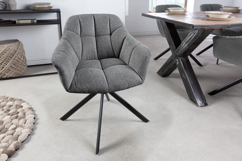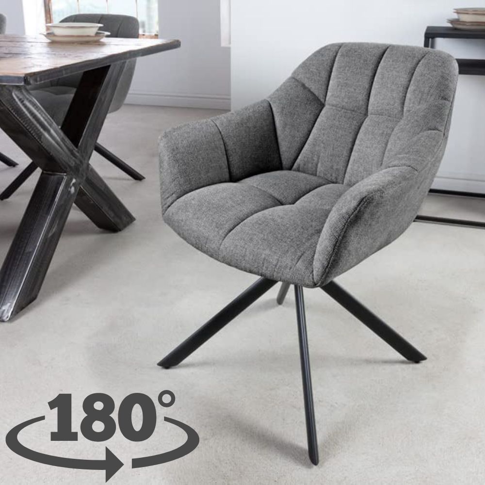 Moderner Drehstuhl LYON dunkelgrau Strukturstoff schwarzes Metallgestell