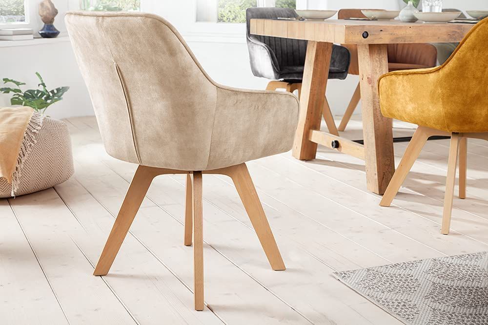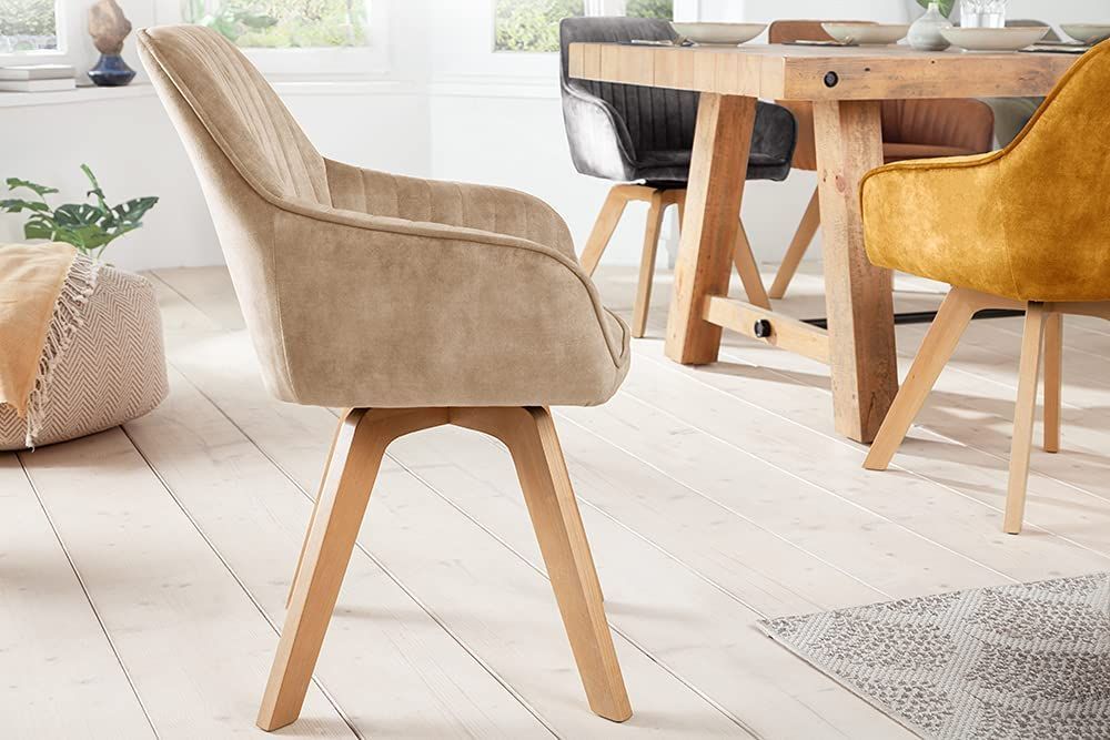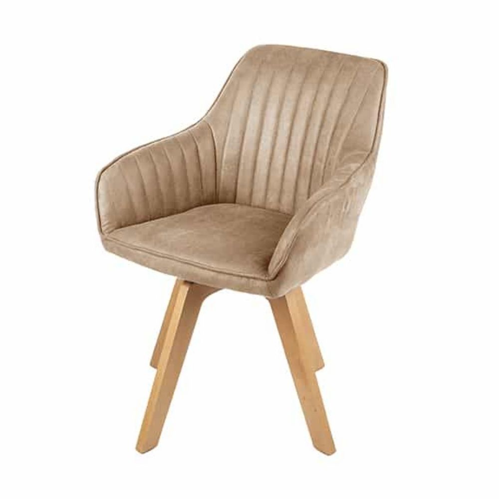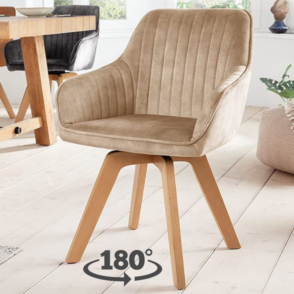Moderner Drehstuhl NOVO Samt sand Buchenholz Beine Armlehnen