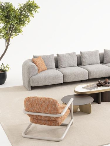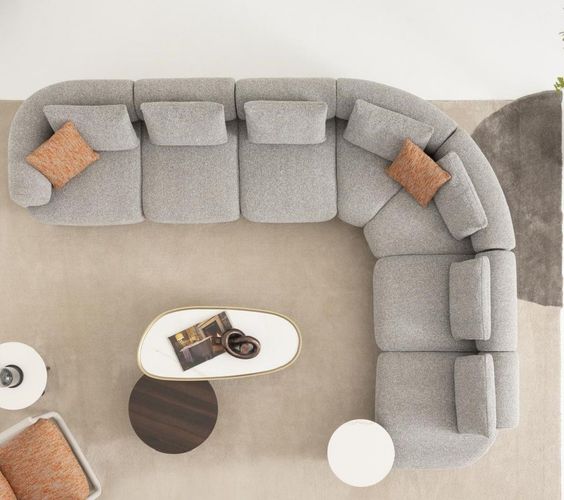 Moderner grauer Wohnzimmer Set aus Textil und Holz