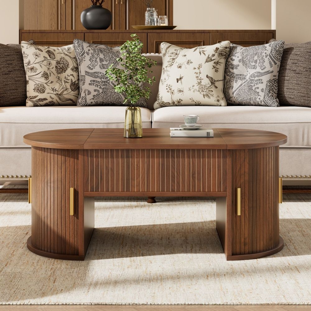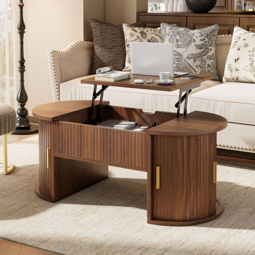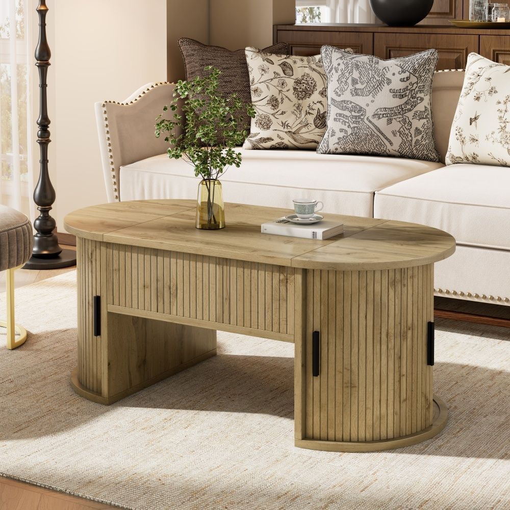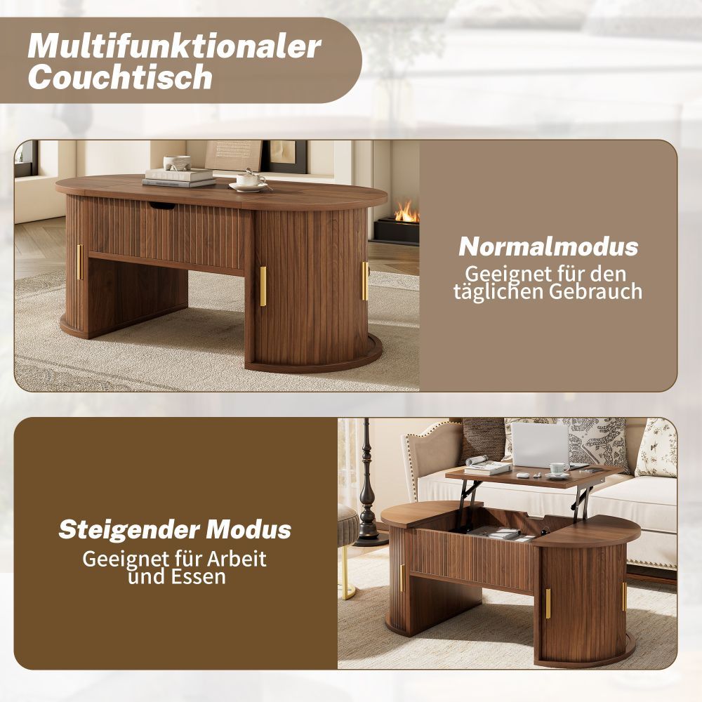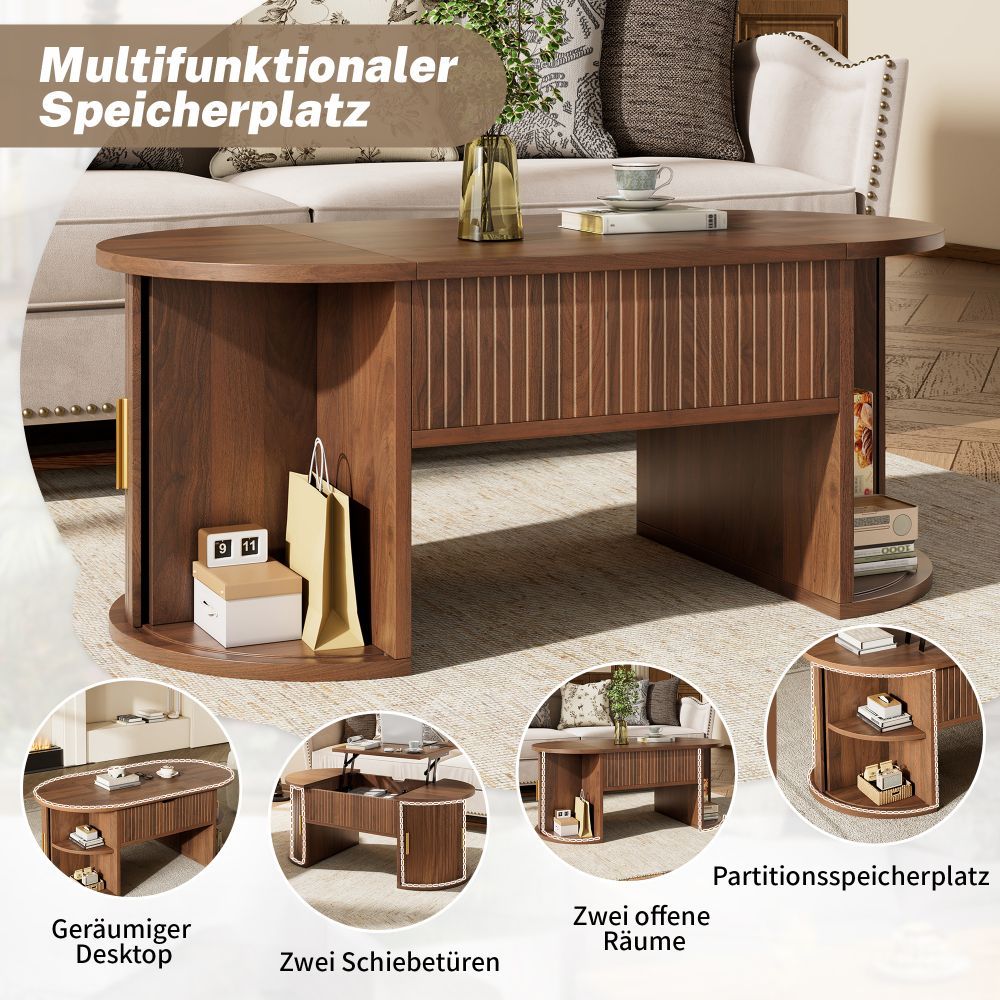 Moderner höhenverstellbarer Couchtisch Oak mit Stauraum Schiebetür