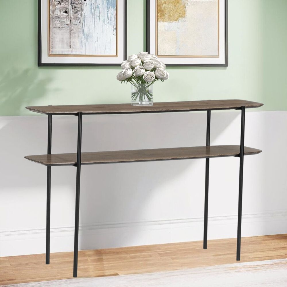 Moderner Konsolentisch PINA 120cm taupe Pinien-Optik Konsole schwarzes Metallgestell