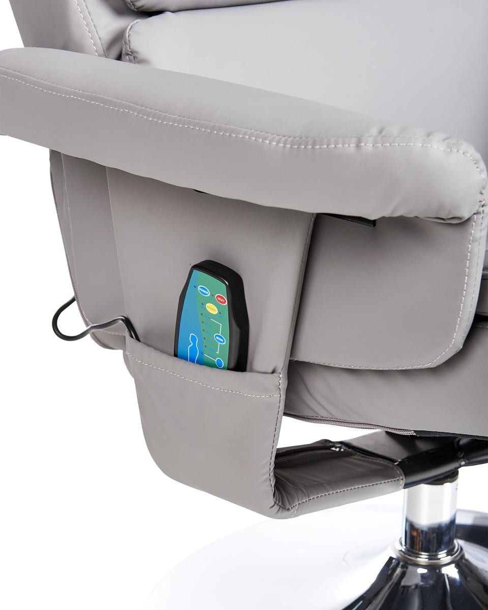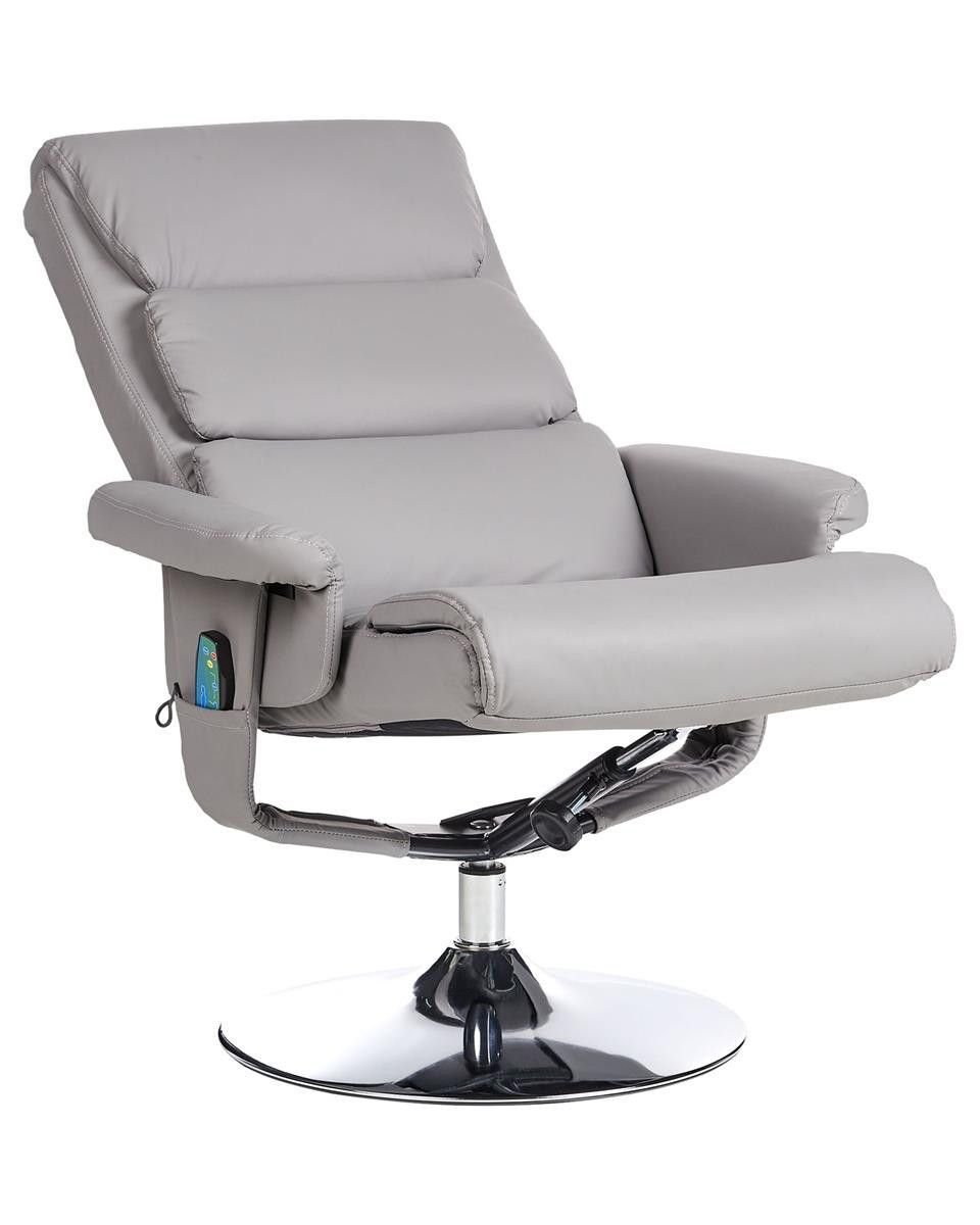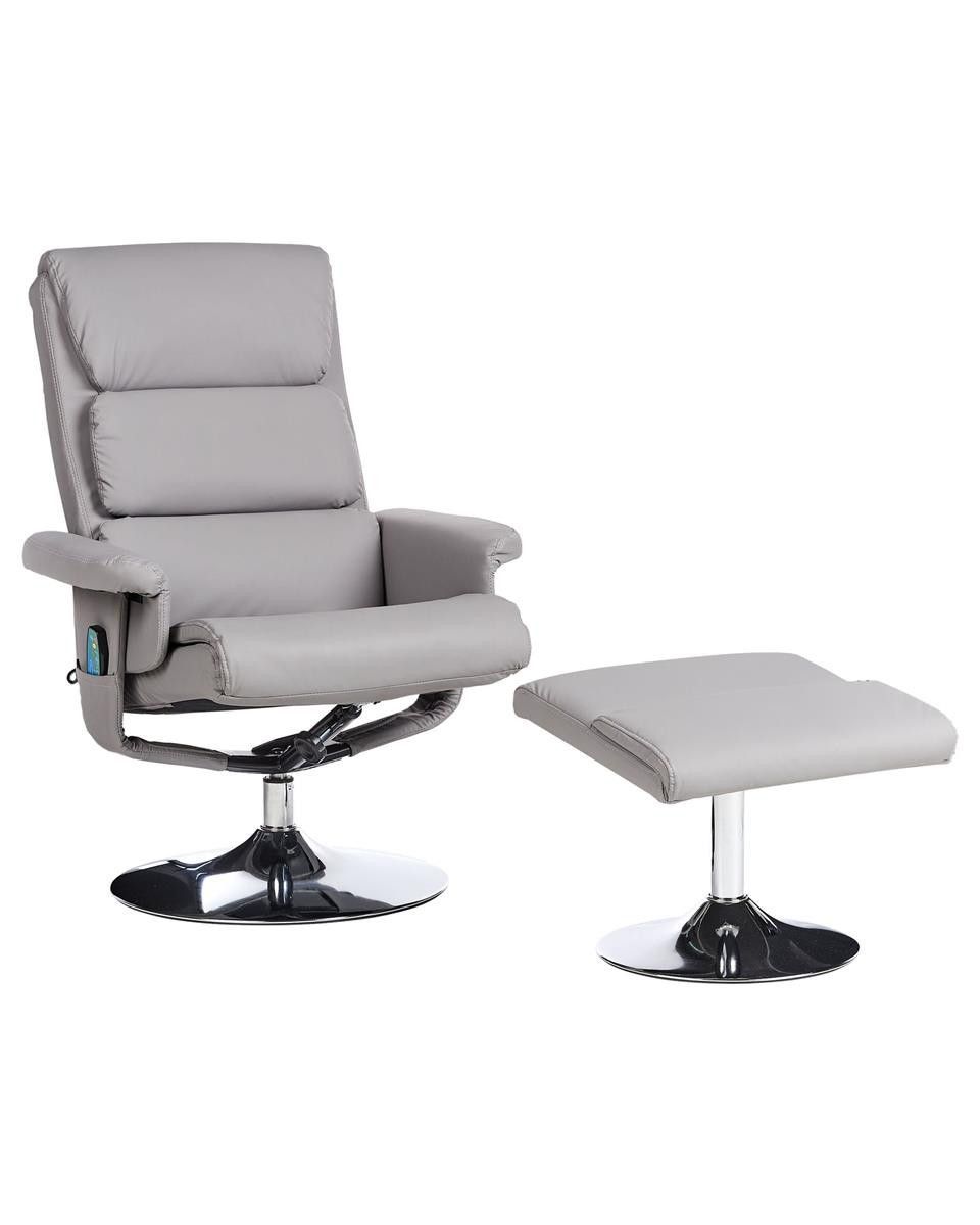 Moderner Massagesessel Leder Sessel mit Massage Farbe grau Fernsehsessel Hocker