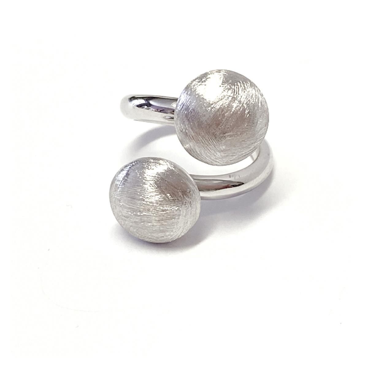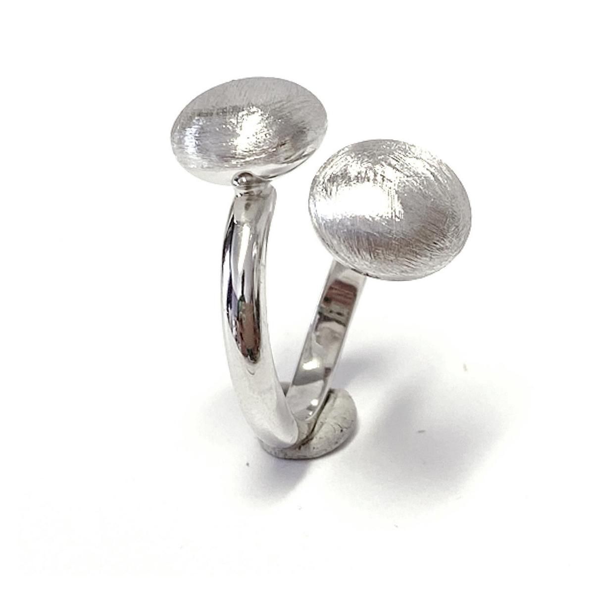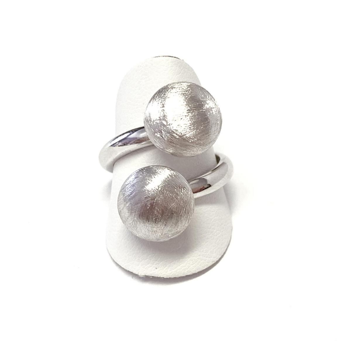 moderner Ring offen 925 Silber mit 2 matten Kugeln (flach) #54