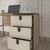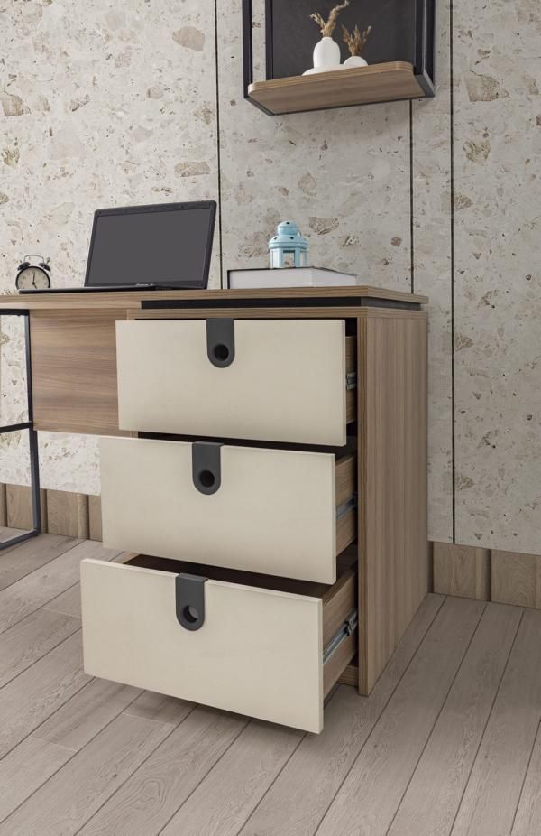 Moderner Schreibtisch mit integriertem Schubladenelement in Creme und schwarzen