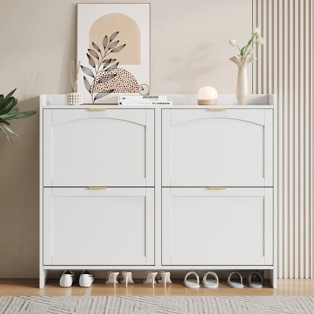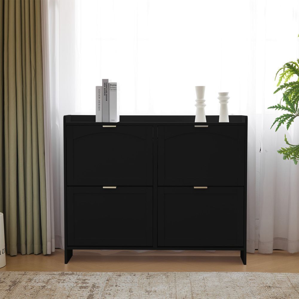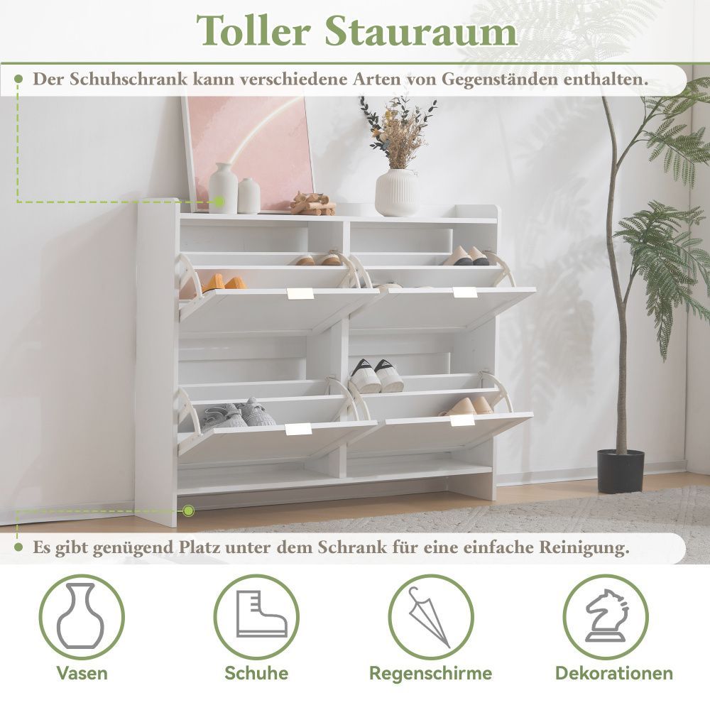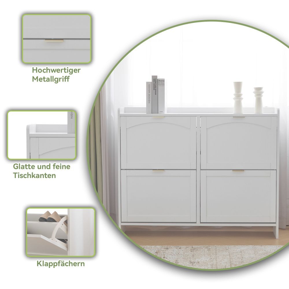 Moderner Schuhschrank mit 4 Klappen, Schuhregal, Flur, Eingang, 110 cm