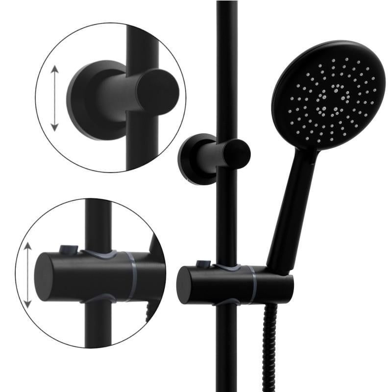 Moderner Schwarzer Duschset mit Thermostatmischer und Regendusche 20cm